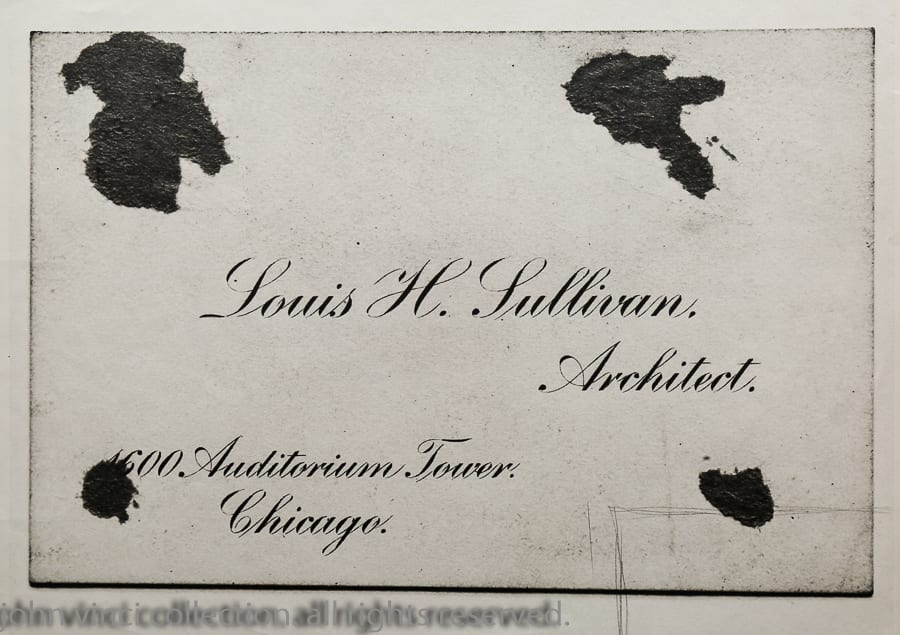 an idea began to form when john vinci visited me to exchange stories about objects housed in the bldg. 51 museum. naturally this led to a reciprocal visit to vinci’s place, which for years housed the richard nickel committee. that is – vinci’s house was once a repository for all nickel’s negatives, papers, and important effects; once his publication the complete architecture of adler & sullivan was complete, he donated these materials to the art institute. i did not expect to see remains from this period, but as it turns out his basement is filled with artifacts he salvaged alongside nickel during the nascent preservation movement. some of the items were gifted to him from nickel’s estate, though the bulk of those are with tim samuelson.