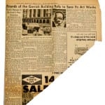 additional ephemera includes a richard nickel hand-written note and a newspaper clipping of nickel laying a wreath at louis h. sullivan’s grave at graceland cemetery. a year and two days later, nickel’s lifeless body was discovered in the rubble of sullivan and adler’s chicago stock exhange. he too was buried at graceland, a short distance from sullivan’s grave. the additional clipping (and others not photographed for this post) reports on efforts to salvage ornament from the impending demolition of the garrick theater. both john vinci and richard nickel were paramount in overseeing and/or participating in removing both terra cotta facade ornament, along with several sections of decorative plaster from the auditorium.