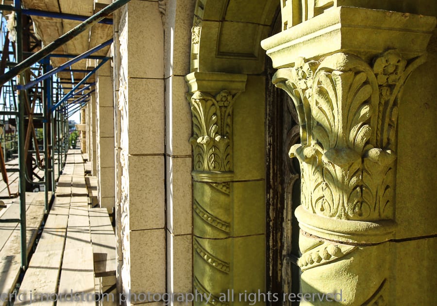 after spending the spring and summer documenting other, historically important chicago-area theaters, i returned to congress (completed, 1926), where this project was fist launched. i spent the majority of the afternoon shooting the facade, which i was eager to do after securing three additional lenses. i devised a more systematic approach, in order to capture any and all ornament, along with the various glazes used. the images below offer a glimpse at the theater’s facade, up close and personal. more to follow.