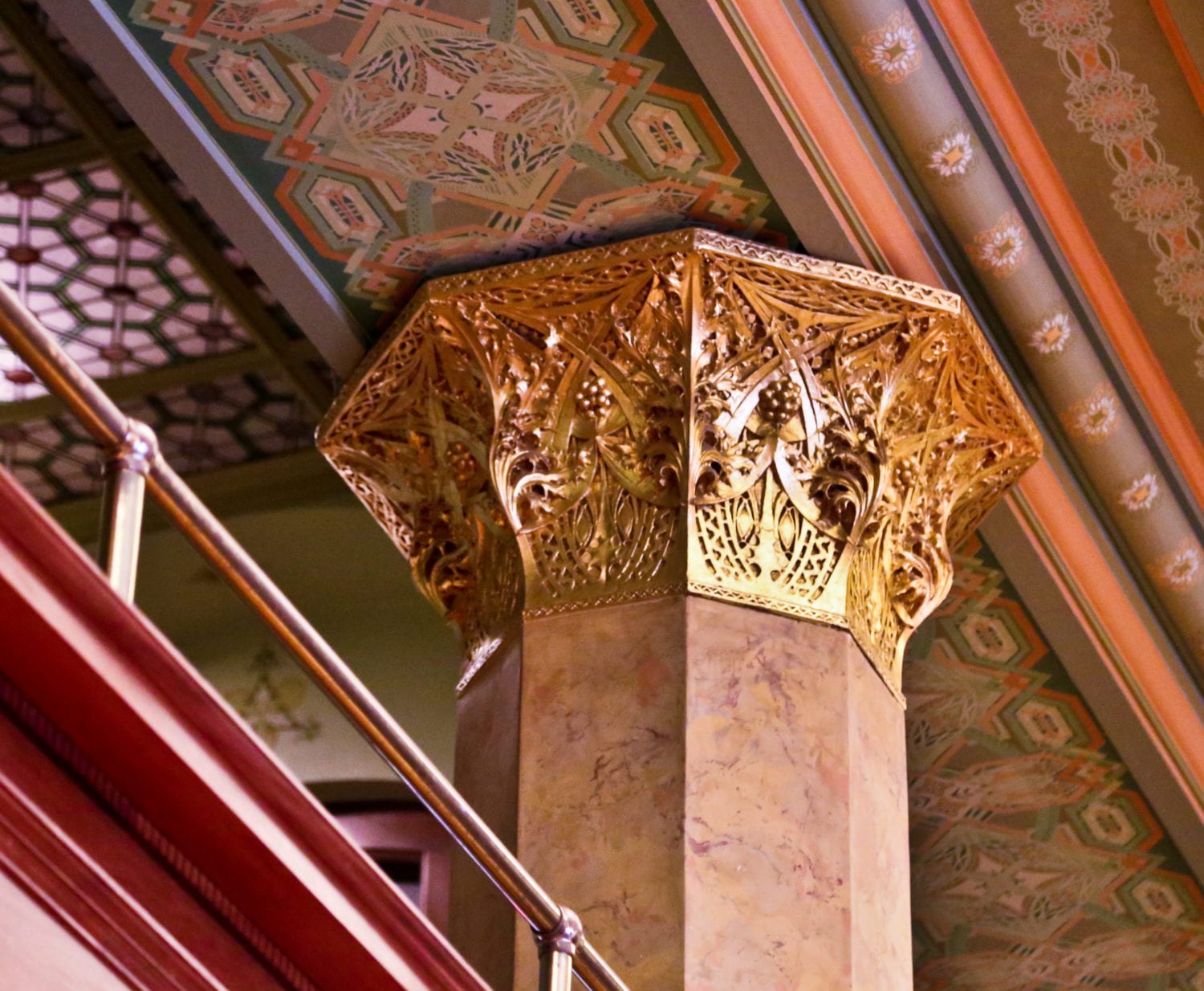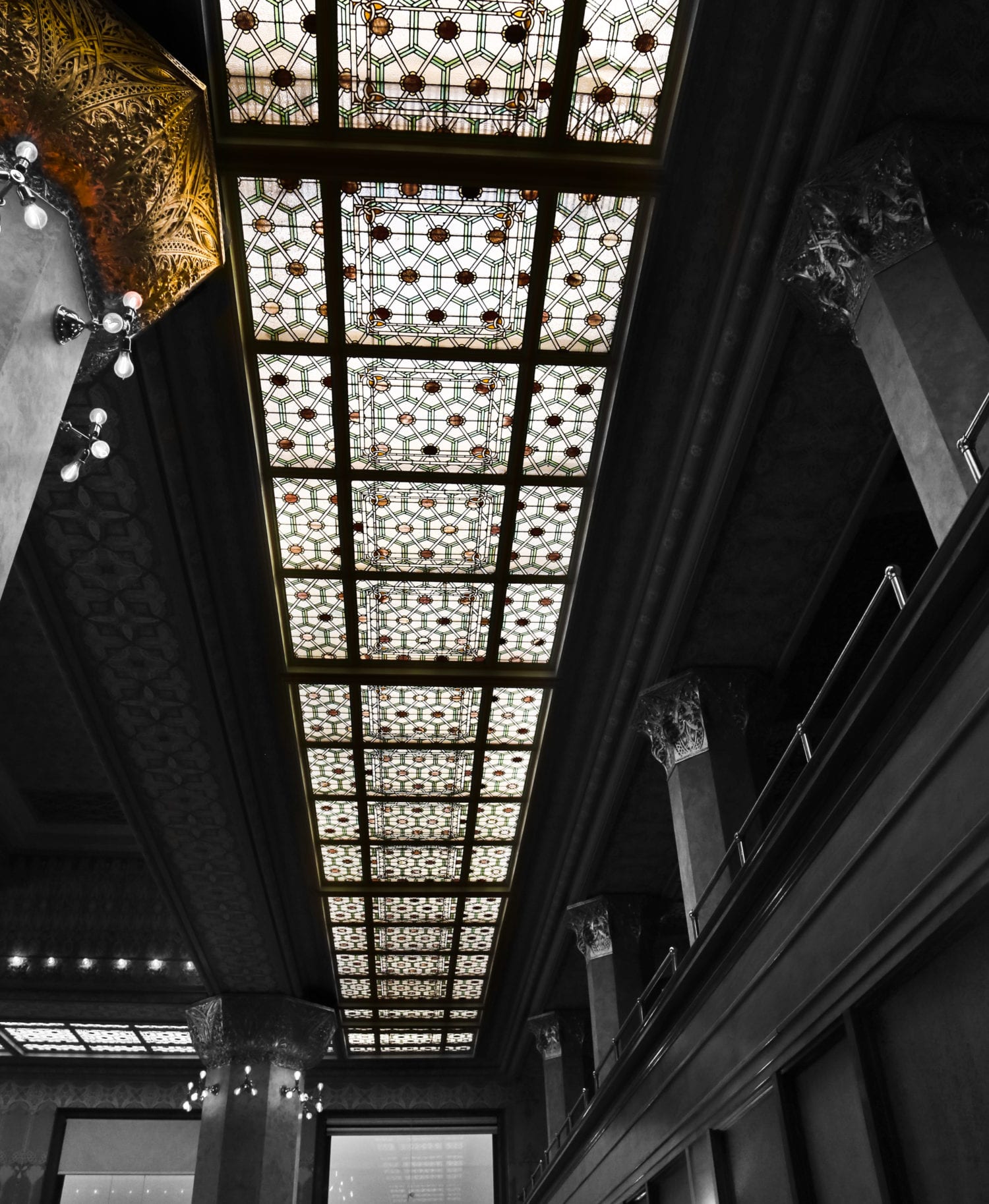 if you haven’t already, please take the time to visit this adler & sullivan masterpiece, containing an extraordinary level of design complexity and detail, and a variety of building materials treated with a visually stunning polychromatic finish. with a sizable amount of salvaged material carefully documented and removed from the original trading room, chicago architect john vinci et al., managed to follow through with a remarkable undertaking: to rebuild the room from the time the chicago stock exchange building was demolished in 1972 to its completion with exceptional exactness in 1977.