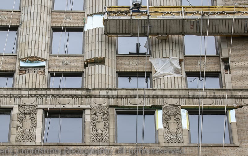 restoration of historic building facades offer a great opportunity to see how chicago buildings were built, when both original materials and methods – concealed for decades behind curtain walls – are exposed to document extensively for future analysis. the seemingly routine work happening behind scaffolding should attract in-depth attention from the public, as restorations are more than just a shift in commercial occupants, they are ambitious processes meriting up-close documentation. transition points may let us understand a building’s life story and evolution, and archive those changes for the future.