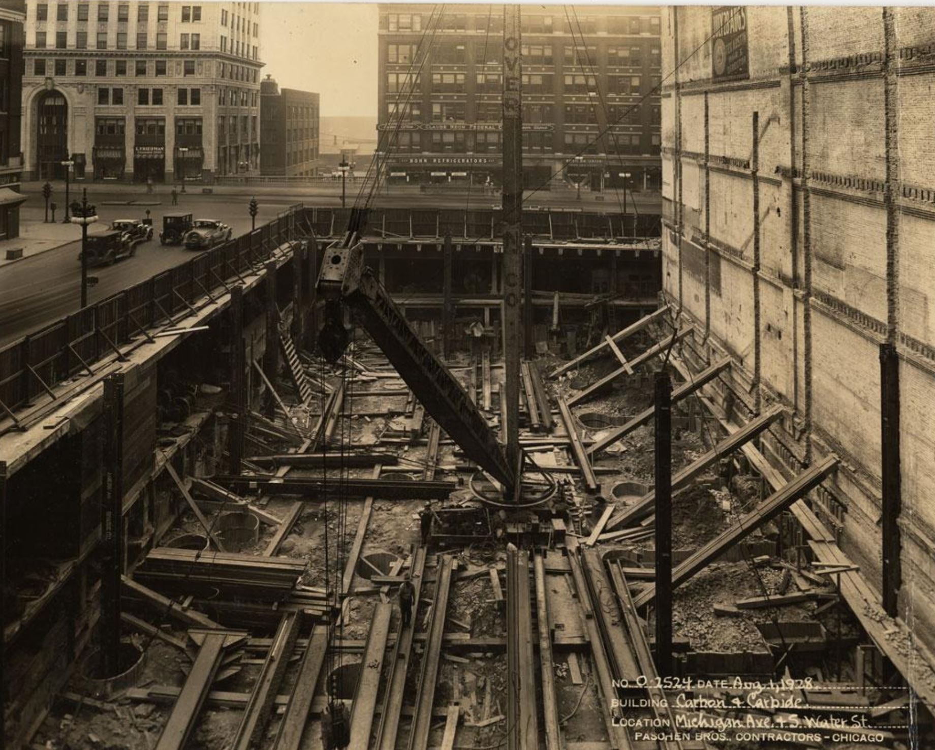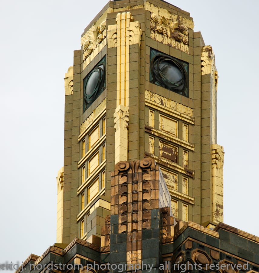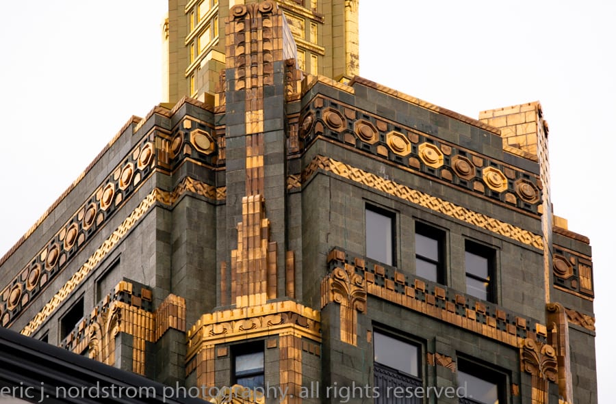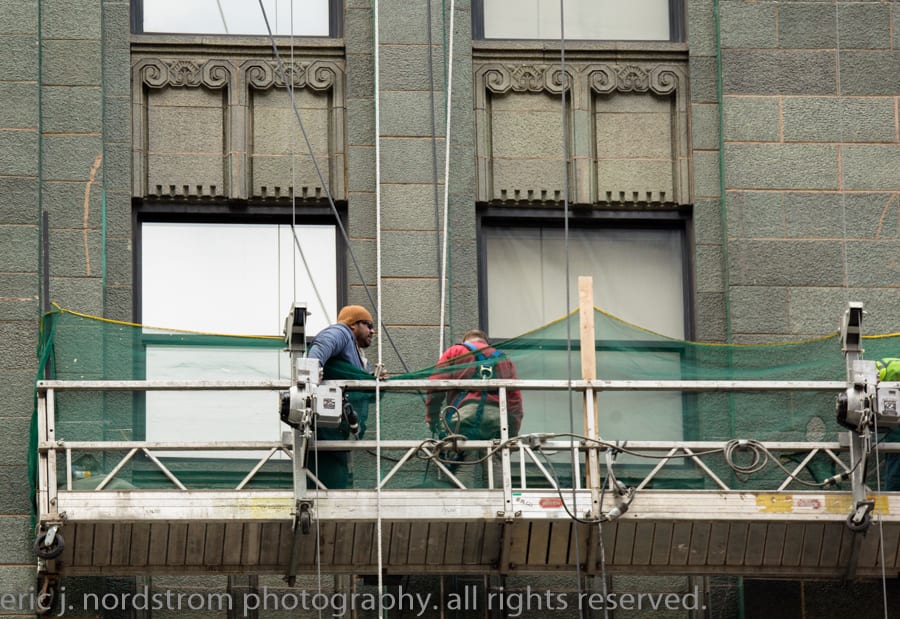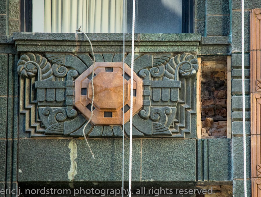 the 37-story carbon and carbide building (1929) appears to be undergoing facade restoration. i did notice cavities covered over with plywood – mainly along the east facade. i was a bit rushed, so will have to revisit and document facade more thoroughly.