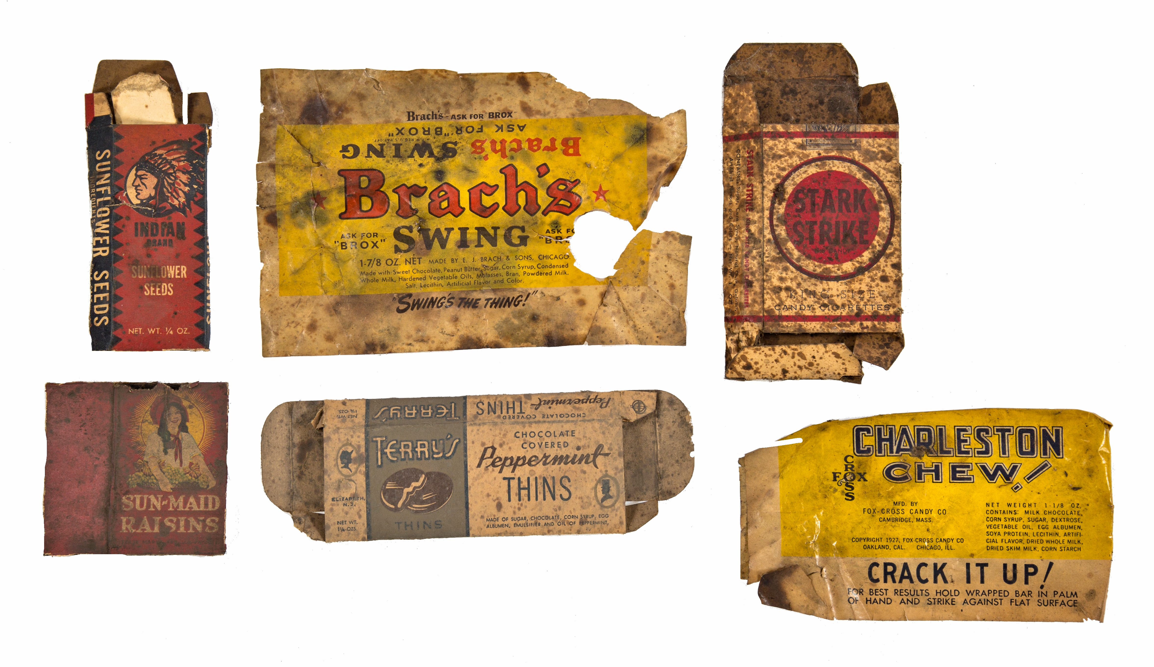 additionally, i ran across a pile of unmarked programs with the theater’s original operators (lubliner and trinz) displayed prominently at the top left corner. last, i’m always looking to find additional candy boxes and/or wrappers to add to the seemingly ever-growing collection of ones found during previous searches in the plenums. a few additional candy wrappers were found and lightly cleaned, documented, and added to the bldg. 51 museum archive.