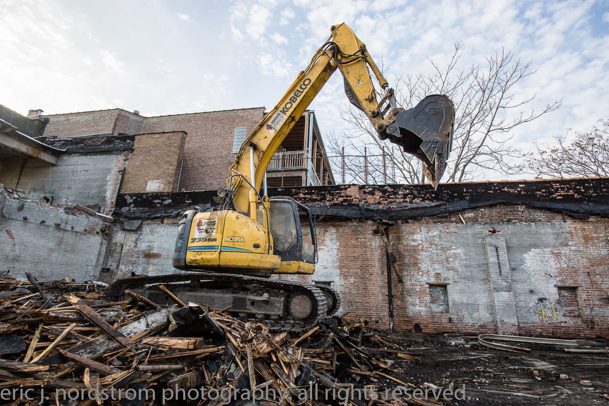 the humboldt garage & auto service company building, erected in 1911 by f.w. ries, is undergoing demolition. i’m sure i will be back to document its final moments.