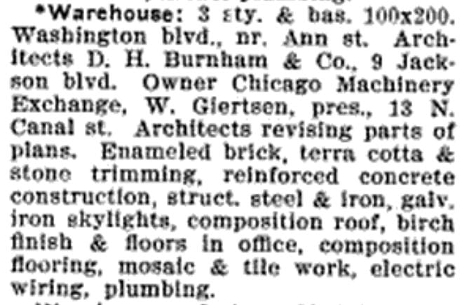 designed by d.h. burnham & company – will be demolished in the coming weeks. the warehouse with basement (100×200) is located at 1217 w. washington blvd.