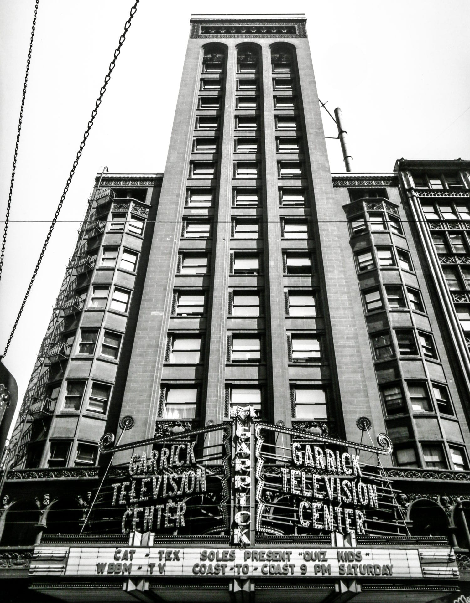the schiller saw many iterations and inhabitants: the german investors backed out of the project near the turn of the century and from 1898-1903 the building became the dearborn theater, showing vaudeville or touring stage shows. five years later its name was finally changed to the garrick theater under new ownership. between 1910 and 1950, the garrick building was leased, subleased, sold and put into receivership six times, but remained, nonetheless, a popular stop on the vaudeville circuit. simultaneously, and in symbiotic fashion, the early twentieth century saw the stretch of randolph street between state and clark streets become a national center for popular sheet-music publishers; filling the garrick and neighboring office buildings, they sold their new material to traveling vaudevillians.