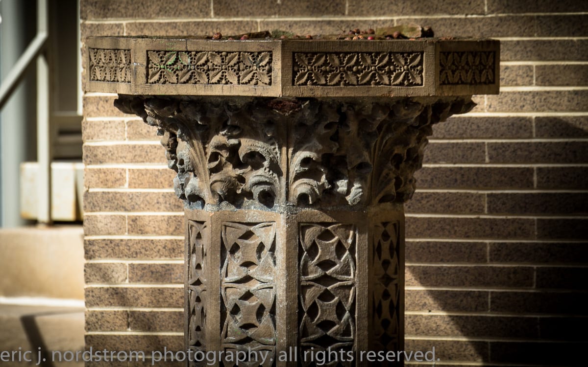 that all changed yesterday afternoon, despite being short-lived, when i spent hours driving around photographing ornament on buildings (many i’ve visited before) while wrestling with the sunlight as it was busy casting shadows, shifting in temperature and, creating moods that can be a creative asset or an unwanted conflict to the mind’s eye.