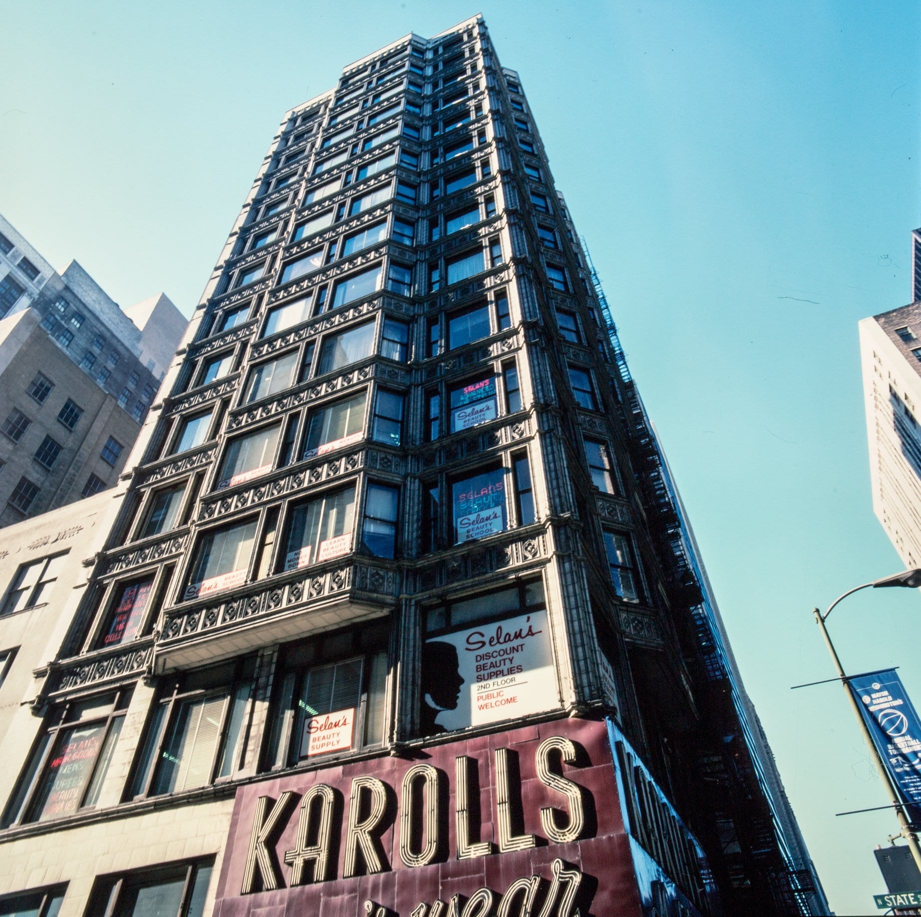 burnham, root, and atwoood’s reliance building (1890-1895) as it looked in 1987. the mood of this tired building (since restored) is overpowering, so i chose to intervene as little as possible. the kodachrome slides were taken by john vinci. i wish i could’ve spent a few weeks inside documenting the layers of time when it looked this way. i like tired…