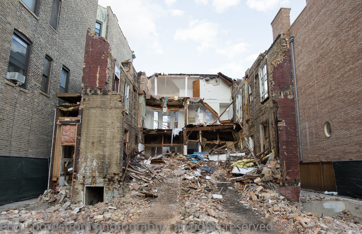 again, another well-maintained post-fire chicago italianate style row house with wood bracketed cornice and original “artificial” stone window hoods will be reduced to rubble in a matter of weeks – maybe less.