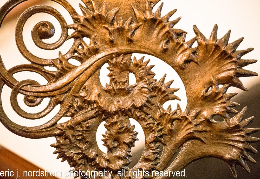 sullivan-designed copper-plated cast iron staircase baluster – auditorium building (1889). adler & sullivan, architects. the ornamental ironwork was fabricated by the winslow brothers (chicago, ills).