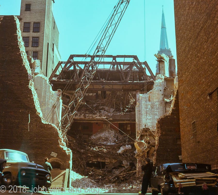 a rare glimpse at the demolition of adler & sullivan’s garrick theater through kodachrome slides