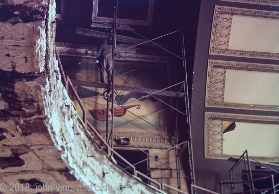 before digitizing and editing vinci’s images – many of them haven’t seen the light of day since 1961, when the garrick was demolished – i spent hours looking over each and every image, mesmerized by what i saw. the colored slides brought me that much closer to being there, along with nickel, vinci, and david norris, dismantling the theater’s ornament while the building was wrecked.