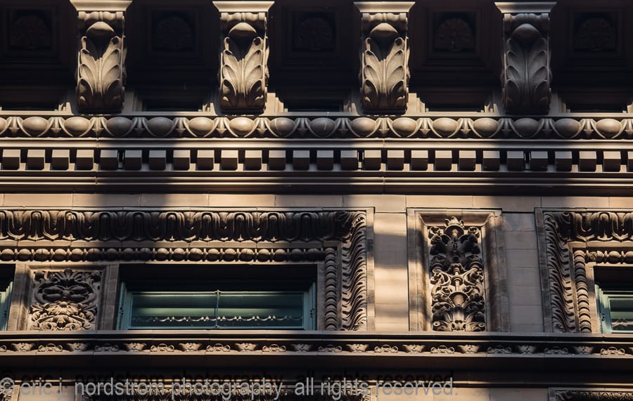 the following gallery represents only a fraction of the images i’ve managed to carefully edit and make presentable for others who share a similar appreciation for chicago’s architectural ornament. some buildings have been revisited – the permanent “fixtures” on my “circuit,” while others haven’t been processed and/or recorded by my mind’s eye. the latter obviously excite me the most, espeically when i become fixated on an aspect of a structure that would have otherwise gone unnoticed if it weren’t for taking the time to seek out new ways of “seeing” ornament.