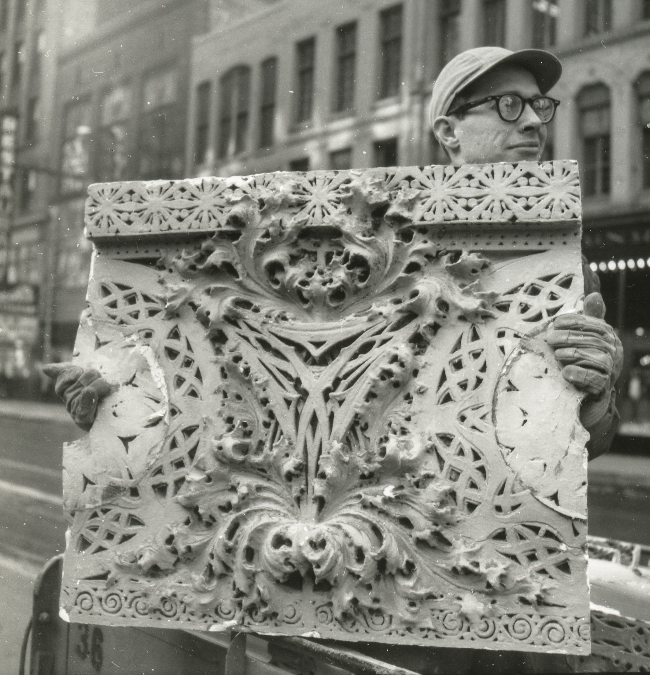 when it came to salvaging architectural ornament, chicago’s richard nickel was exacting, tedious, and methodical, both in preparation and execution, on any and all demolition sites. an invaluable example of this approach (rarely seen since) lives on in the form of nickel’s “ornament “scrapbook,” which was a guide he created to carefully extract interior and exterior ornament from adler & sullivan’s garrick theater (1891) shortly before and during the building’s demolition in 1960.