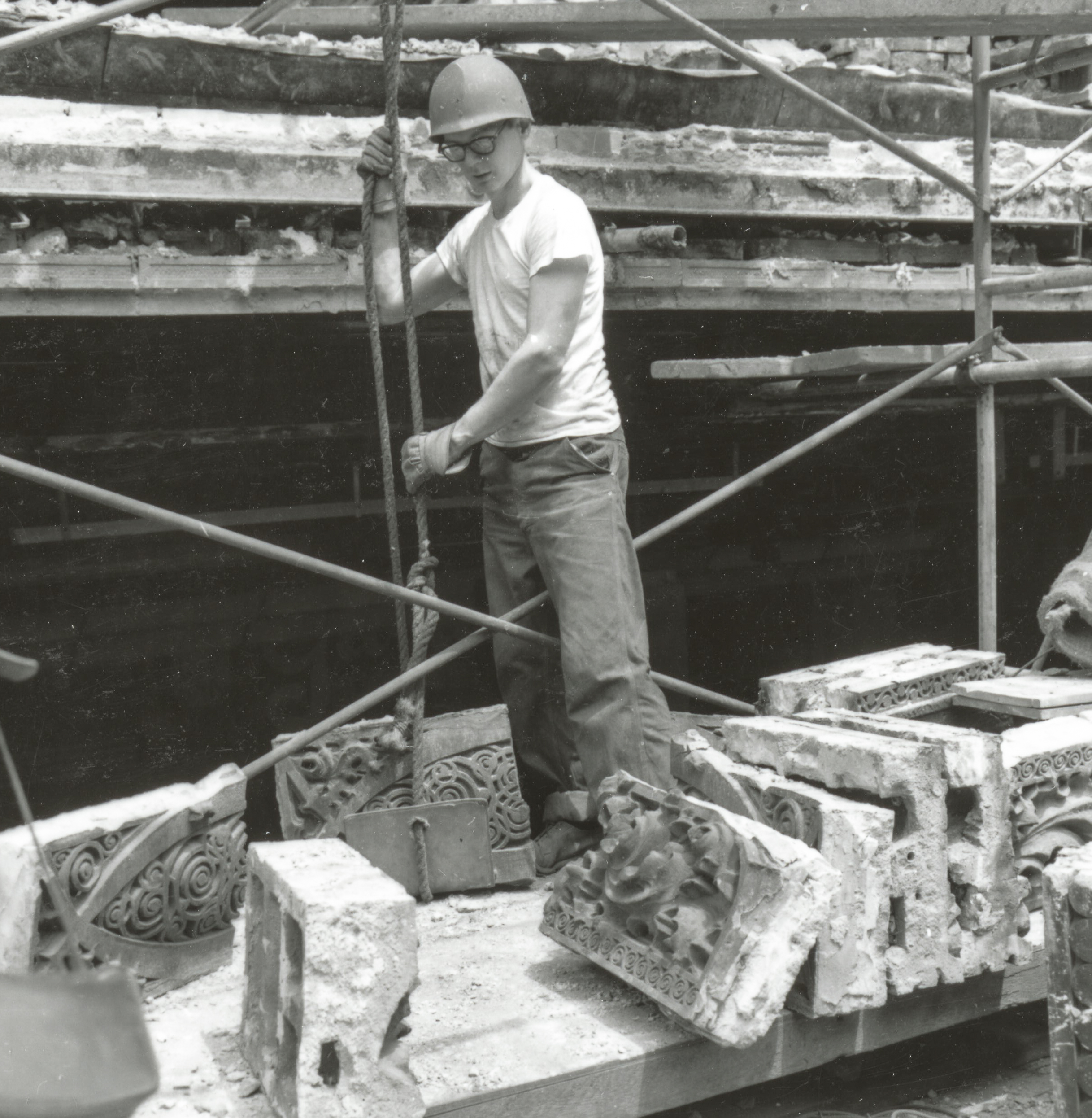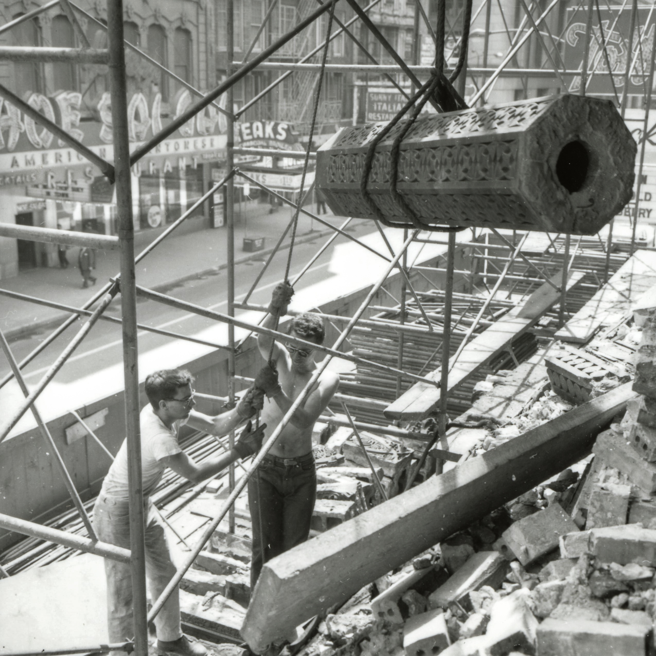 the additional images, courtesy of the ryerson and burnham archive, art instite of chicago, were pulled from numerous contact prints nickel made, documenting the entire salvage operation from beginning to end. most of the images include members of the salvage team (i.e., richard nickel, john vinci, and david norrison) in action, along with workers from atlas wrecking – the company charged with demolishing the building.