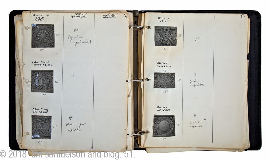 this workbook- now fully digitized from front to back – will be a critical component in the book i’m slowly piecing together on the salvage operations of the schiller building or garrick theater – one of chicago’s most beloved adler & sullivan buildings that was reduced to rubble. crafting a story based on the salvaged ornament, documentary photographs, artifacts left by tradesmen and patrons, and any and all ephemera pertaining to the building will no doubt be a massive undertaking, but the importance of shedding light on one of the earliest architectural ornament salvages in the country must not be overlooked and/or forgotten.