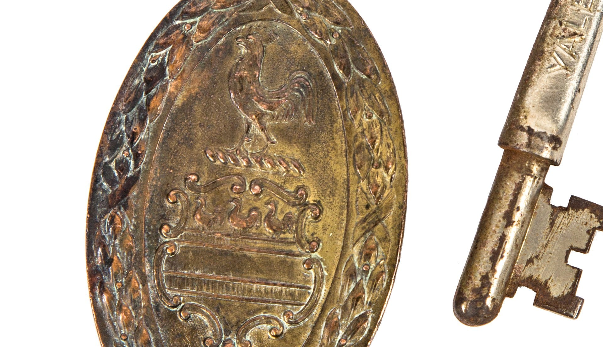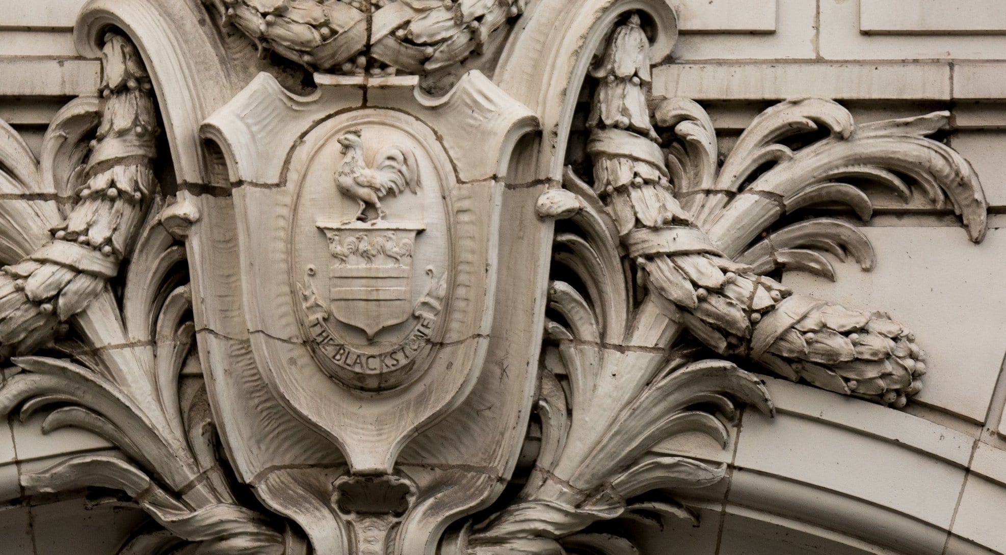 i believe this is the earliest key fob (acquired today) issued to guests that stayed at the blackstone hotel when it opened in 1909. the nickel-plated key and chain are likely original as well. the rooster motif is found on the hotel’s fobs, doorknobs, and a terra cotta cartouche above the building’s michigan avenue entrance. the hotel’s architect was benjamin marshall.
