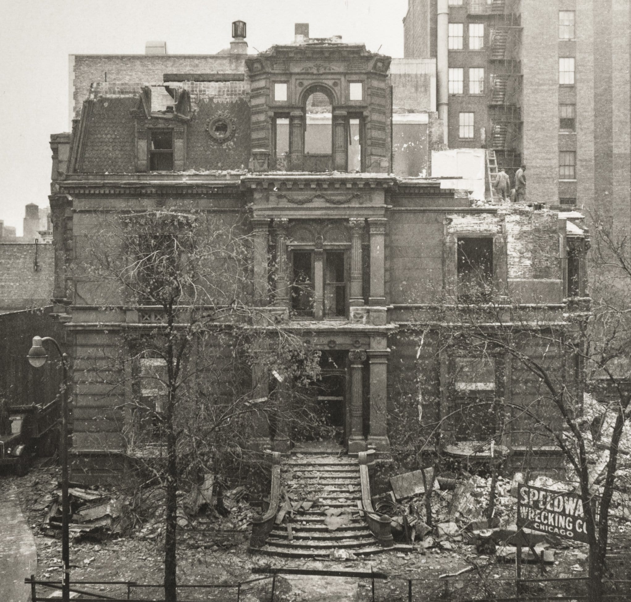 i’ve had trouble tracking down exterior images of the mccormick mansion undergoing demolition for quite some time now. i finally found a few taken by richard nickel in 1954 last week. the more widely known interior images with graffiti on the walls were taken by nickel shortly before demolition. located at 875 rush street, the 35-room french second empire mansion was built for cyrus mccormick (inventor of the grain reaper) in 1879.