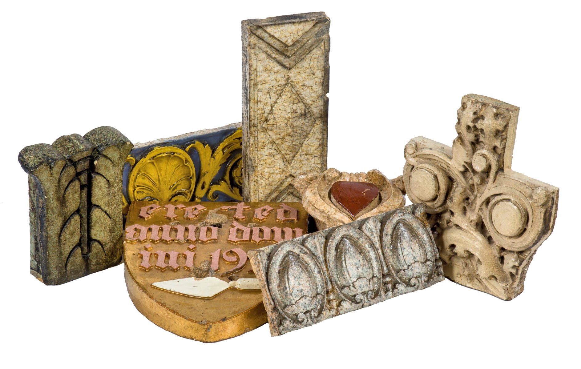 examples of uniquely finished early 20th century terra cotta ornament salvaged from altered/demolished buildings in and around chicago.