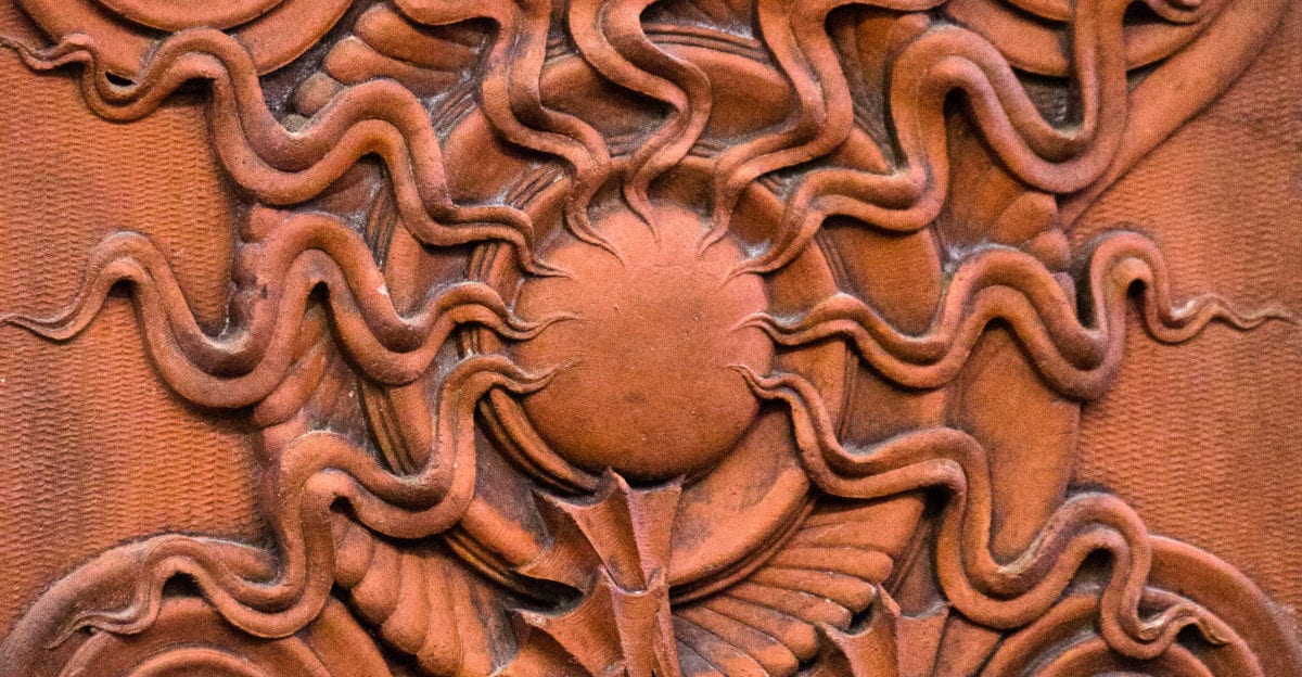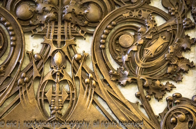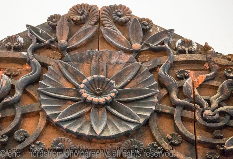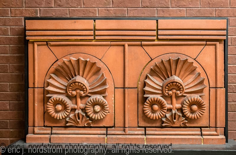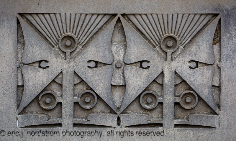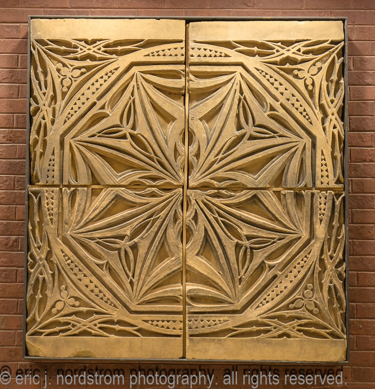 note: the top image was taken by richard nickel shortly after the installation was completed after 1965. the following image is a modern view of the same wall (south wall) or ornament.