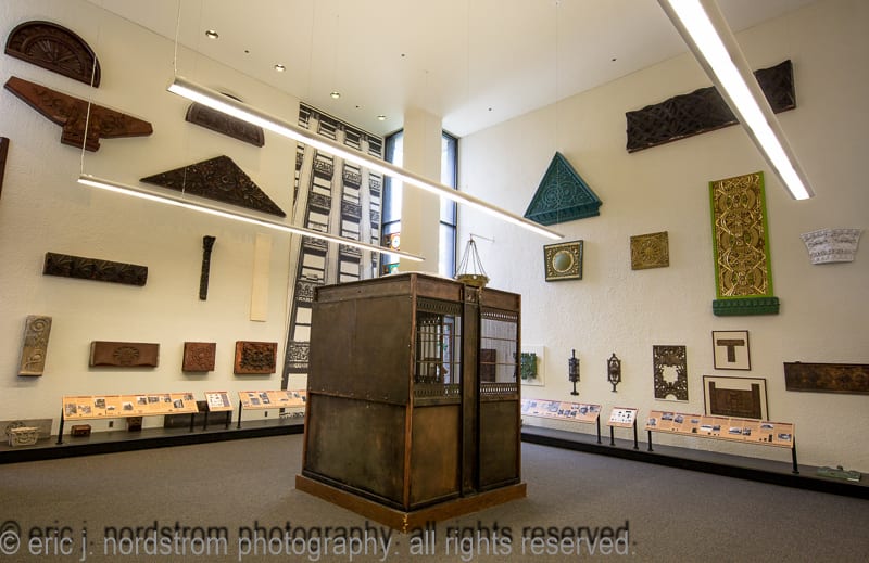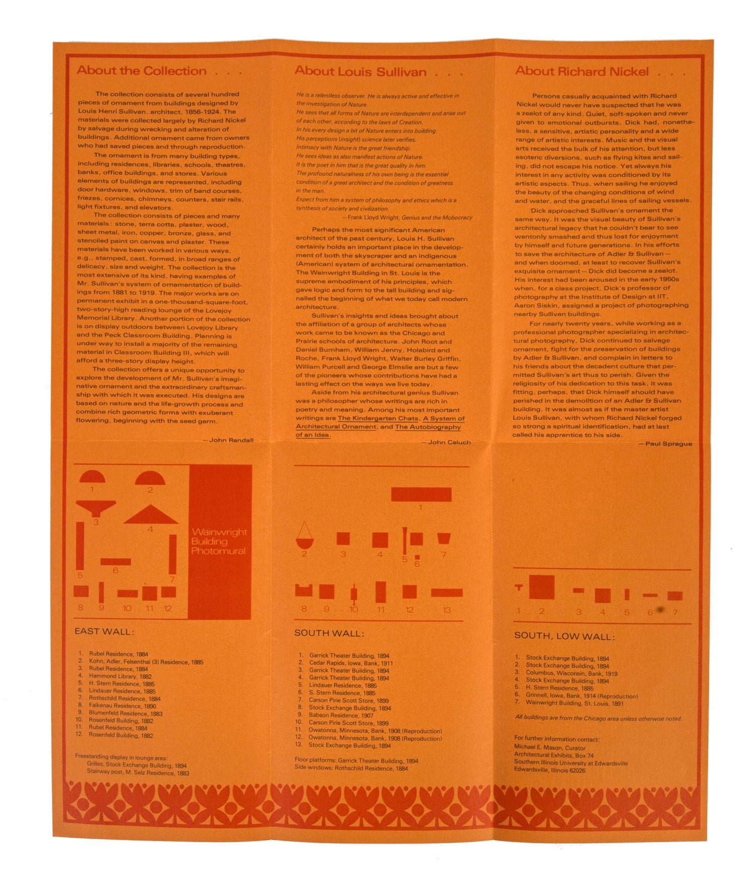images of richard nickel’s adler & sullivan building ornament collection on display at lovejoy library, southern illinois university edwardsville (siue). nickel sold his architectural artifact collection to the university in 1965 but continued salvaging additional fragments until his untimely death in 1972.