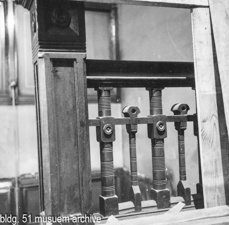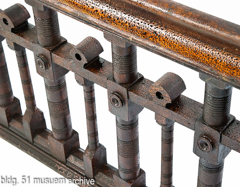 the salvaged oak wood newel and railing with turned spindles are the only surviving examples of wood ornament used in an early adler and sullivan loft building. amazingly, the original varnished finish with aged “alligator” texture remains largely intact.