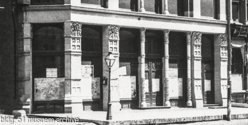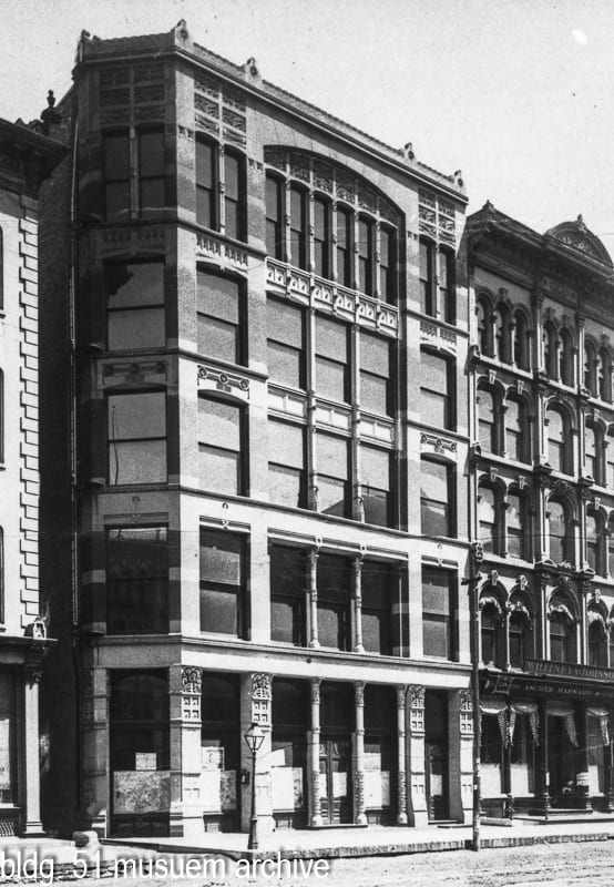the upper floors of the building still retain the simple sullivan-designed steel cut cast plaster ceiling medallions are nearly identical, albeit smaller, to the escutcheons used in the ann halsted house completed in 1884. the plaster ceiling medallions likely executed by sculptor james legge. cannot recall offhand what other original elements are left in the building.