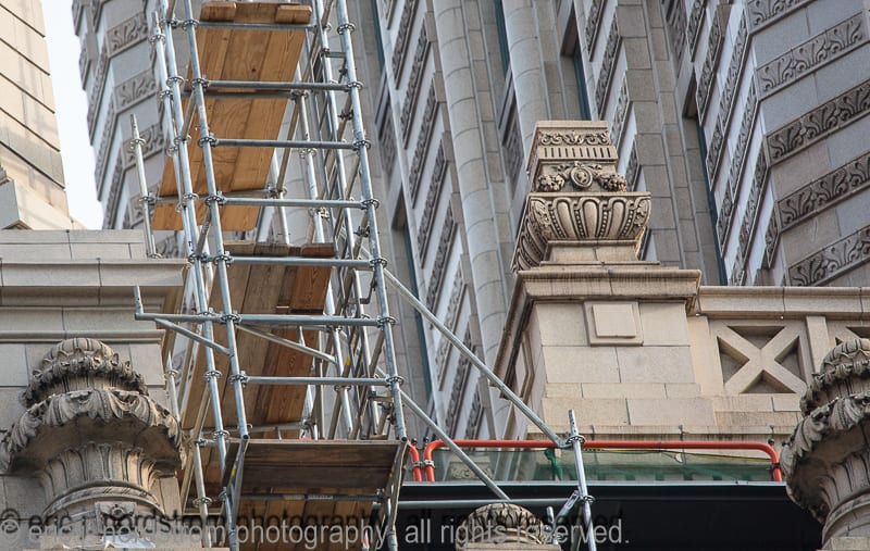 thousands of cream-colored terra cotta have been repaired or replaced – boston valley terra cotta was brought onboard to reproduce several sections of terra cotta ornament that have since been reinstalled on the building’s terra cotta facade (by looking closely at the images in this blog entry, identification of the newly made versus original terra cotta can be made by simply looking at the differences in glaze (e.g., the newly fabriated terra cotta has a might lighter finish).
