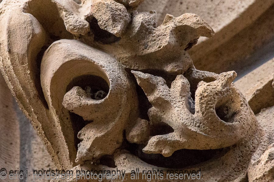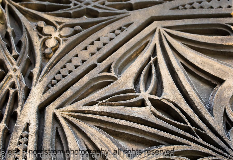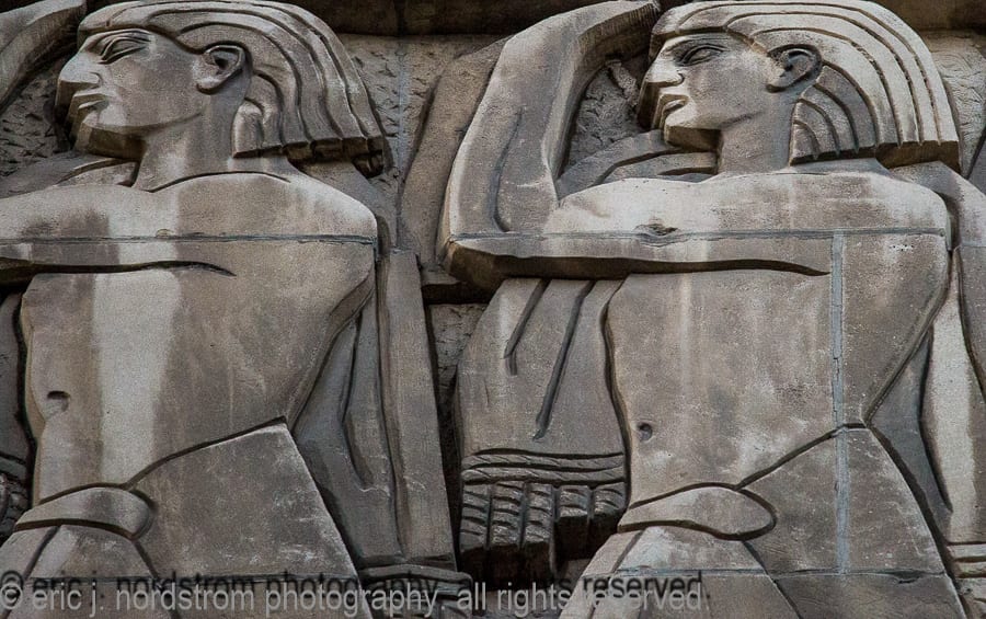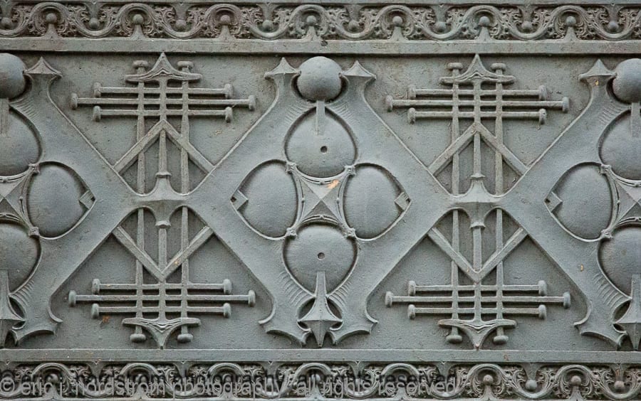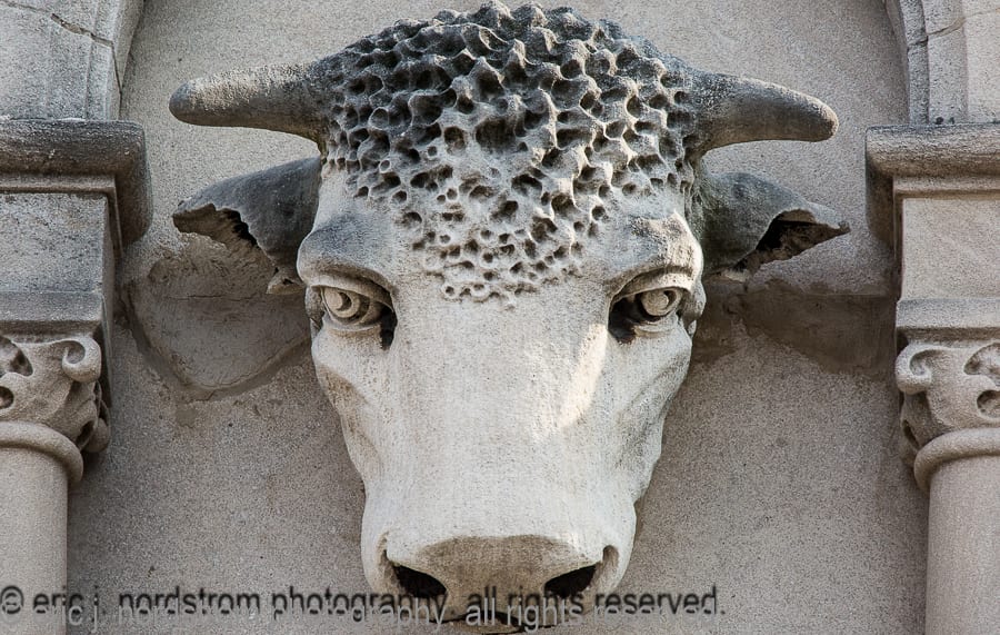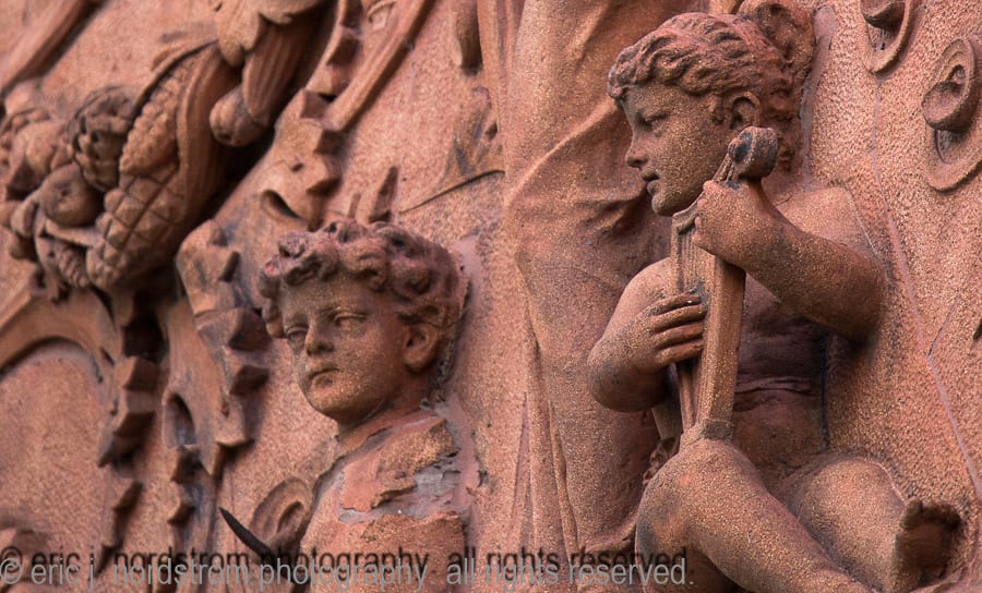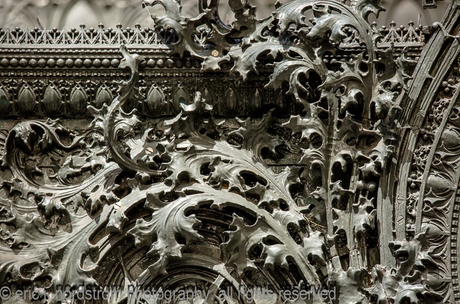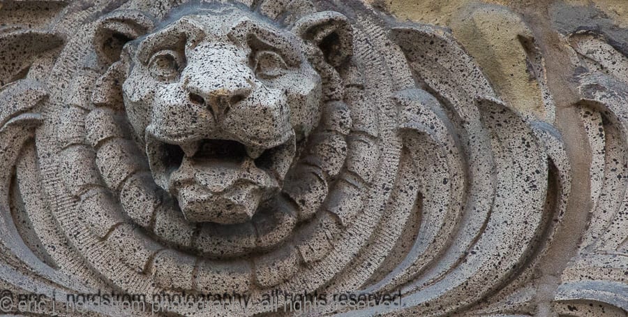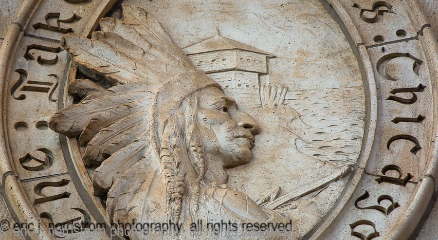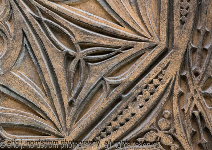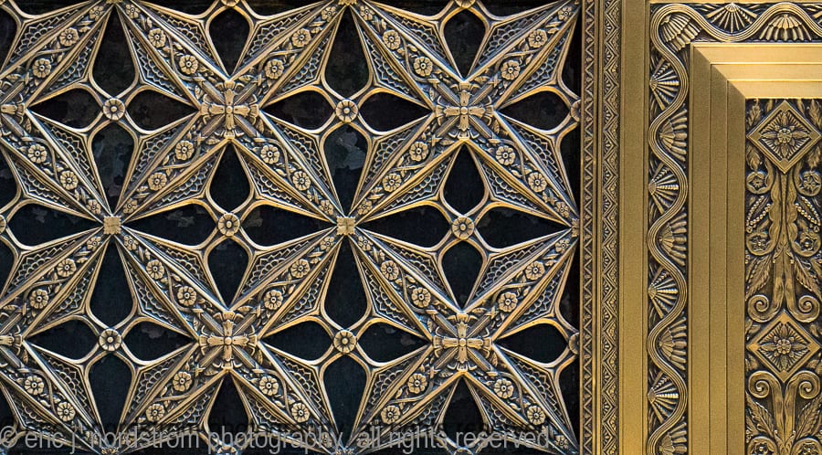 the majority of the buildings enjoy landmark status, while others are relatively unknown, but are dressed with highly stylized architectural ornament executed in a variety of mediums, including, but not limited to, glazed terra cotta, cast and wrought iron, bronze and brass, wood, cast plaster, and bedford and/or joliet limestone.