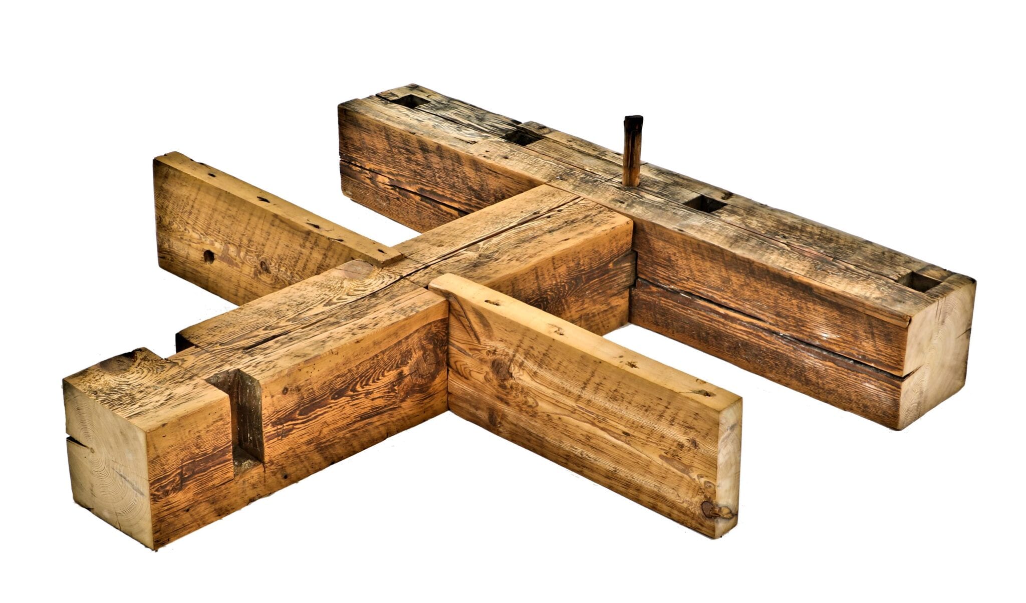 nearly discouraged enough to abandon this project altogether, i quickly switched gears the following day after the wrecker sent me an image of a “hidden” door and the unexpected “old world” mortised and tenoned sill plate configuration, with multiple girders and oversized joists (for residential construction anyways). interestingly, i’ve seen more and more heavy sill timbers featuring “gaining and mortising” methodology in houses constructed during the 1880’s and this was an exceptional case in point. furthermore, the interlocking timbers were reinforced with faceted pegs, not spikes. the configurations of girts and/or girders (found on both the first and second floors) may vary slightly, but the materials and methods are largely consistent with the latest documented use of pegs (found in a house demolition) dating to the 1890’s. with the “system” so intact (thanks to the wrecker waiting patiently for me to arrive on the scene), i spent a great deal of time meticulously cleaning, reassembling and documenting the individual components for further study.