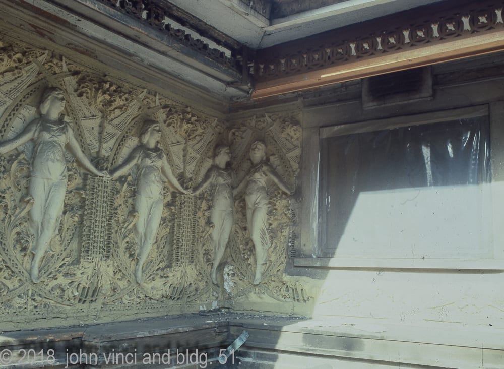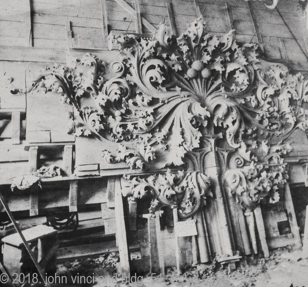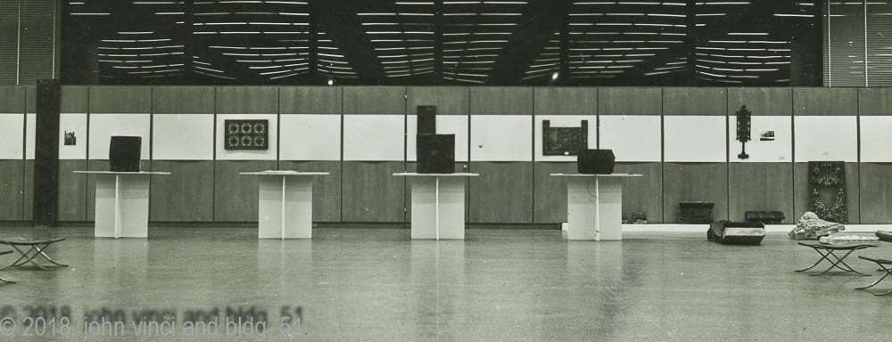 additional images (other than kodachromes) i digitized include: the illinois institute of technology in the 1940s, kristian schneider’s model of sullivan’s gage building terra cotta cartouche (one of two) , and richard nickel posing next to his sail boat, and john vinci’s 1959 sullivan exhibit held at iit’s crown hall.