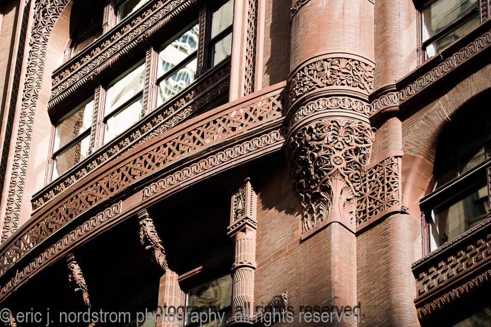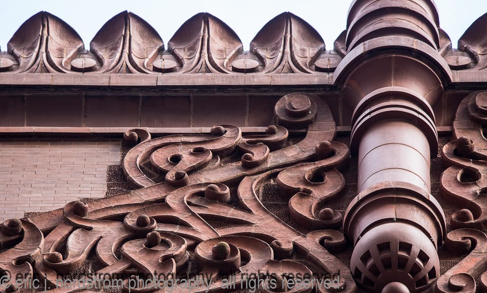 on a more recent trip, i repeatedly photographed the interior and exterior ornament, hoping to search it’s details for a greater degree of insight into the building’s design program articulated in terra cotta, metal, marble, glass, and stone.