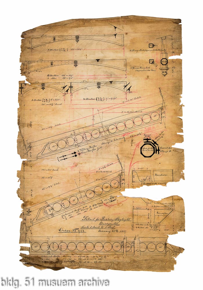 not without purpose, this documentation was critical by a more recent acquisition pictured below. the original drawings shown here are of the rookery’s the light court skylight.