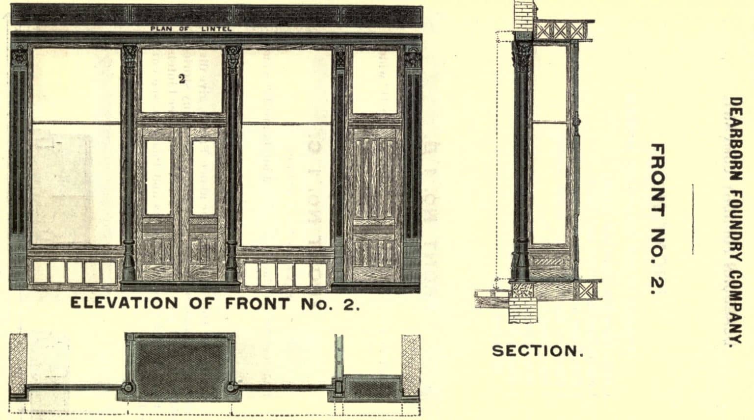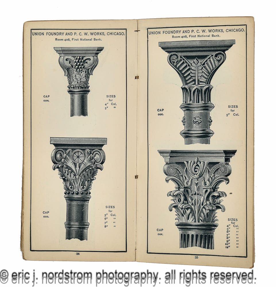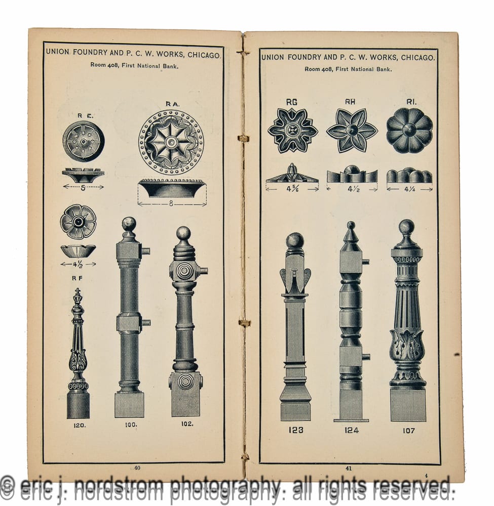 i’ve researched/written extensively about cast iron “fronts” adorning late 19th century and early 20th century chicago commercial buildings executed by dearborn or union foundry so this configuration and ornament used is nothing new, but important, nonetheless. in addition to having period catalogs showing numerous facade configurations, i’ve managed to salvage a great deal of components from these “systems” for further study (see pics).