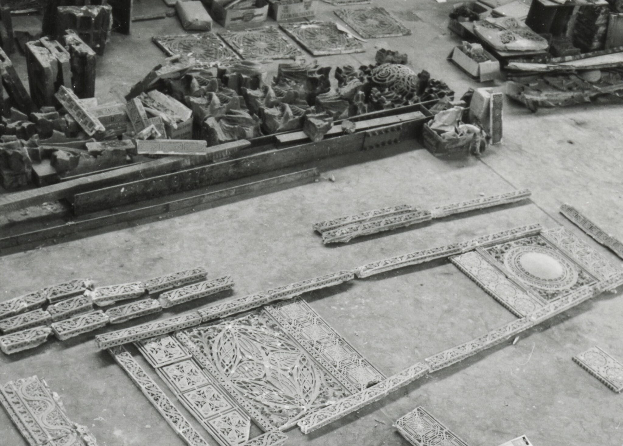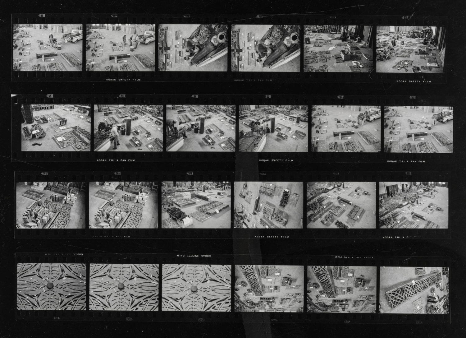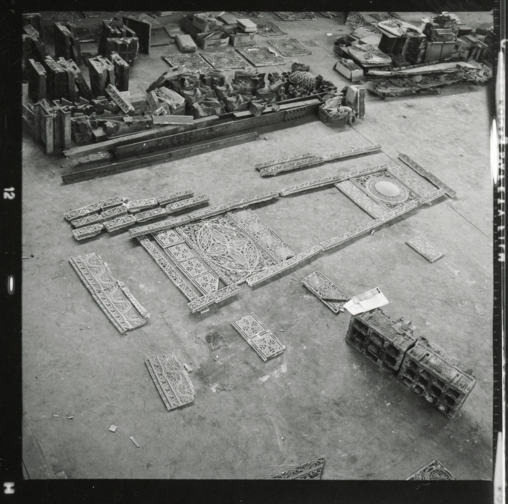 this is the largest group of images (i’ve seen thus far) reflecting richard nickel’s effort to systematically document (using 35mm) the universe of garrick ornament salvaged, and how it was displayed and/or reassembled at the pier.