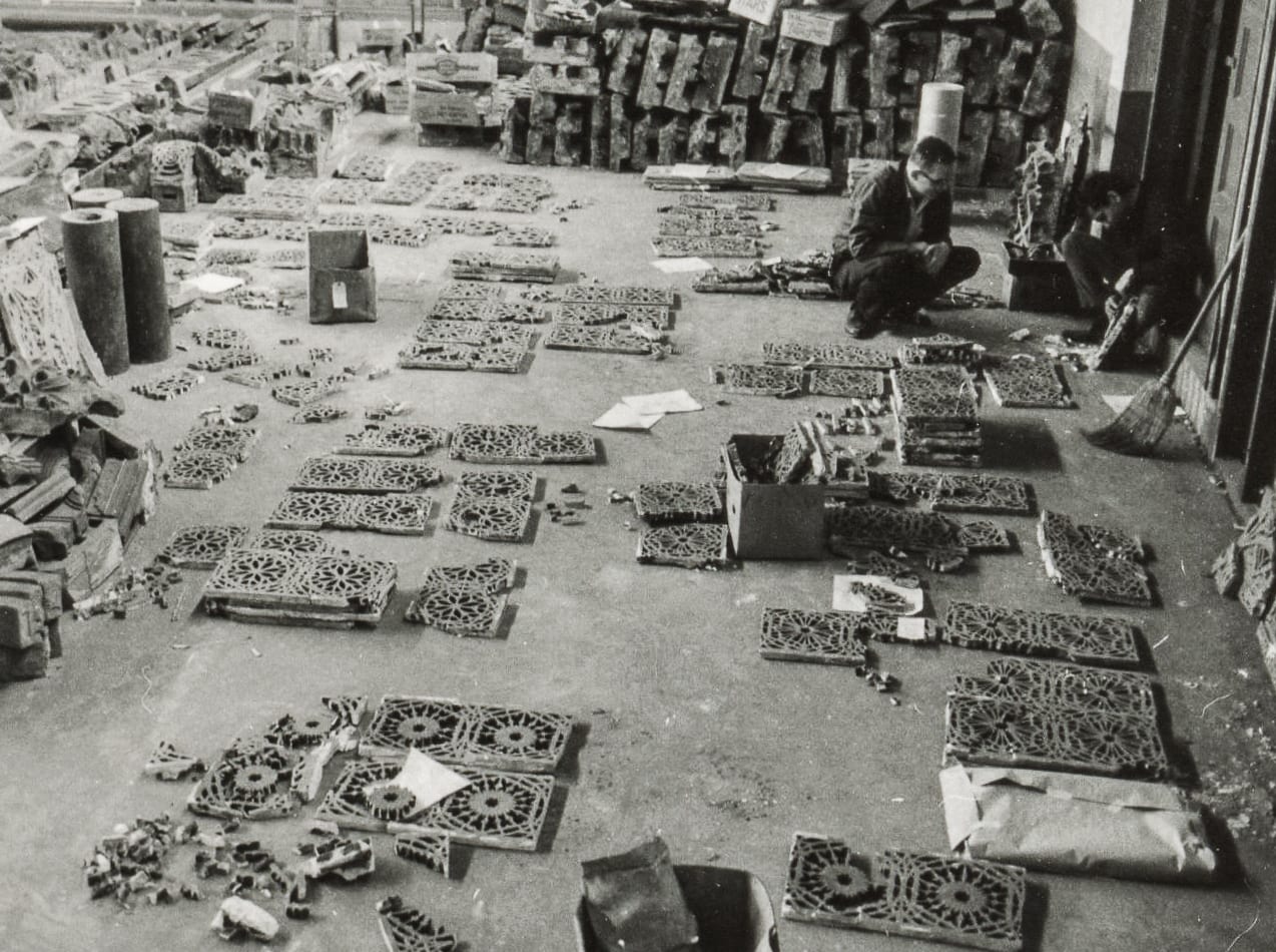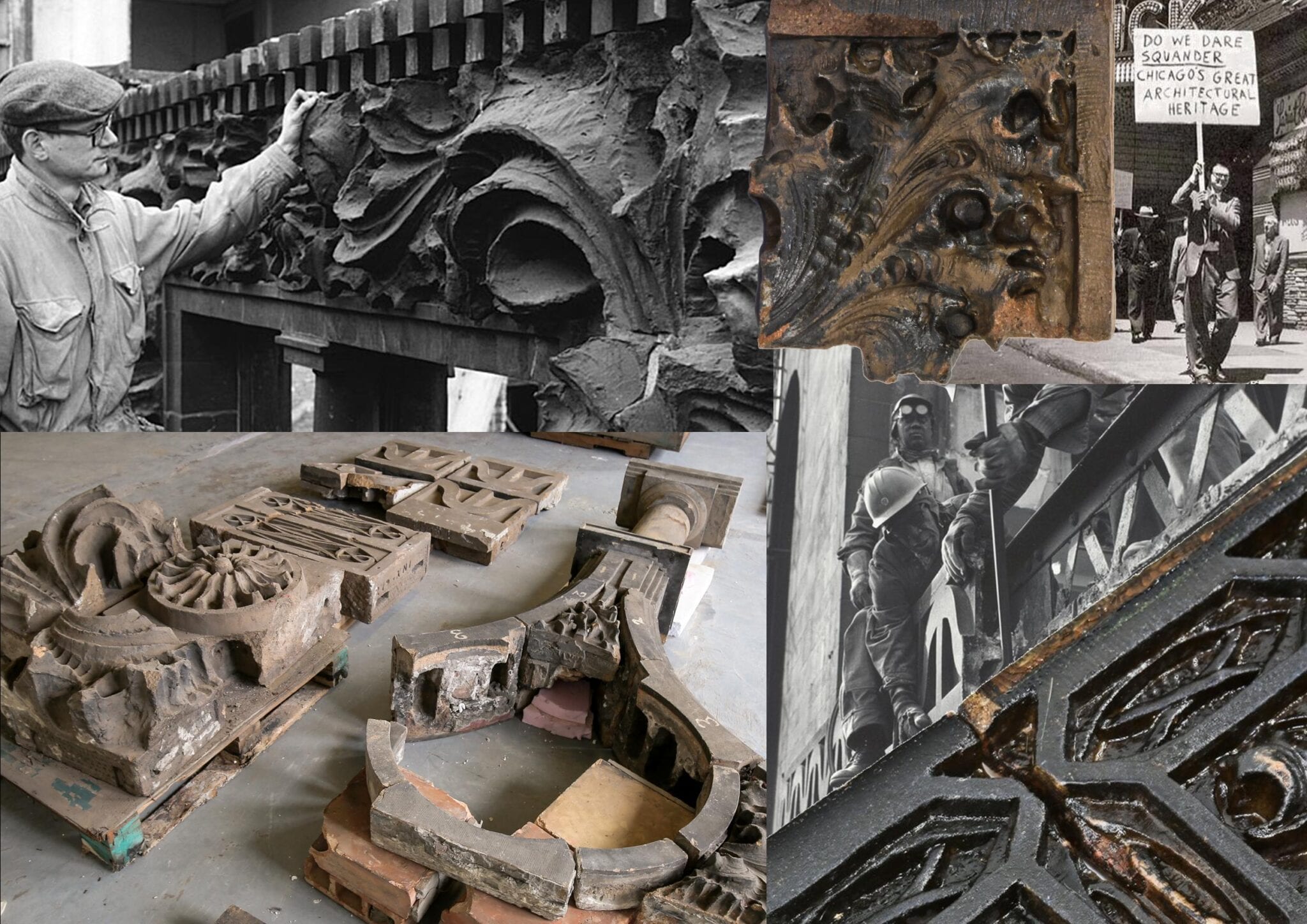 17 Feb afterlife of sullivan-designed ornament as it appeared in a makeshift garrick theater graveyard at navy pier