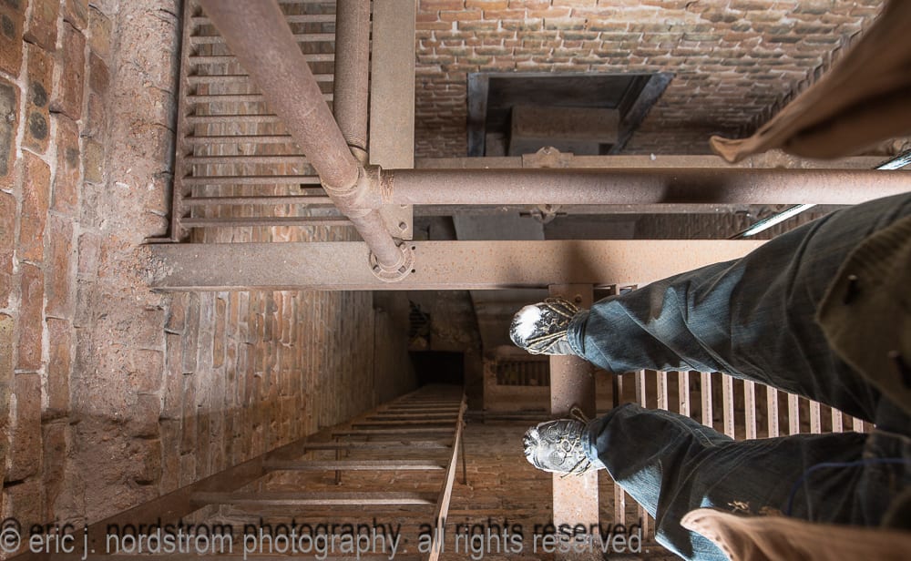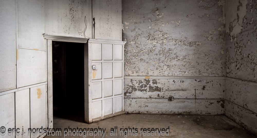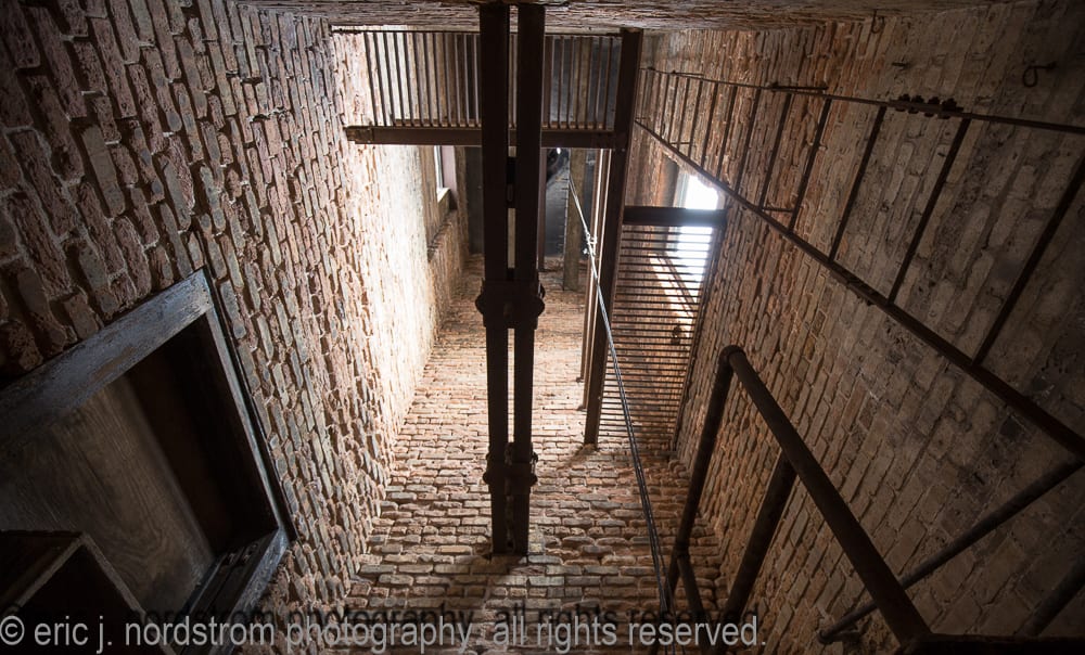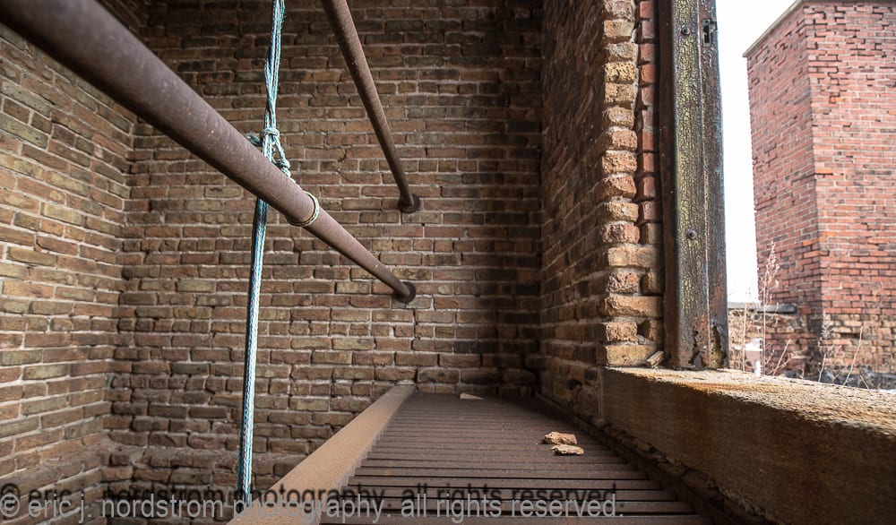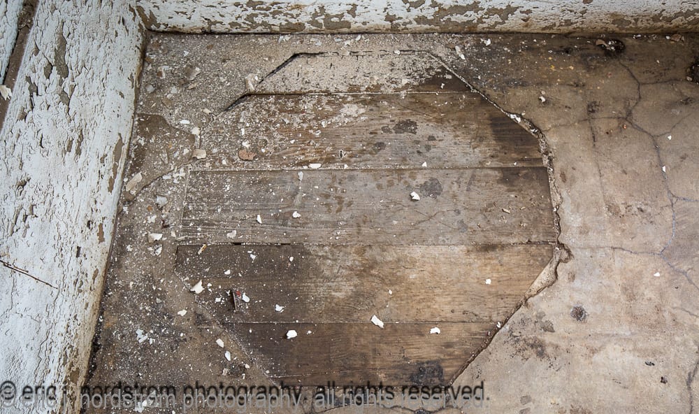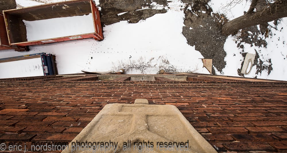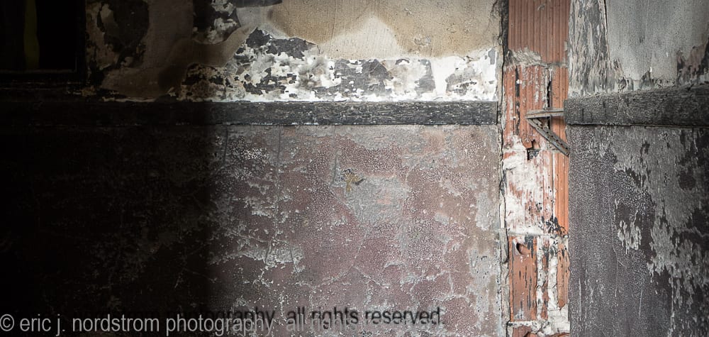 heneghan wrecking was kind enough to allow me to document both the inside and outside shortly before demolition commenced. there is some interesting ornamental white glazed terra cotta trim around the windows (interior side) and two octagonal-shaped holes punched through the second floor where the brass poles were located. the basement was flooded, so i didn’t make it down there.