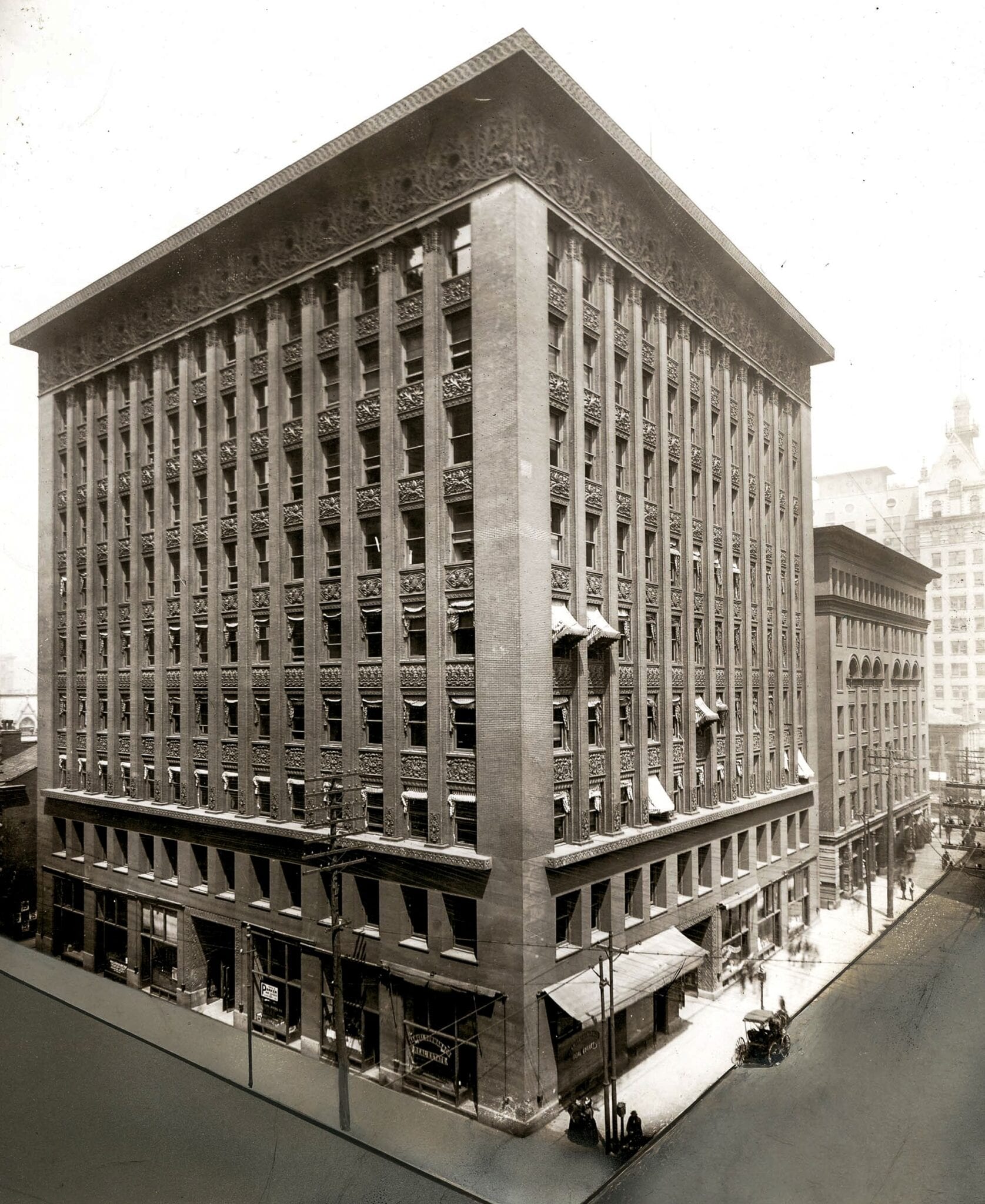 Wainwright Building. 709 Chestnut Street. Adler, Sullivan, and Ramsey, Architects. Photograph by Emil Boehl, 1907. Missouri History Museum Photographs and Prints Collections. Commercial Buildings. N10484.