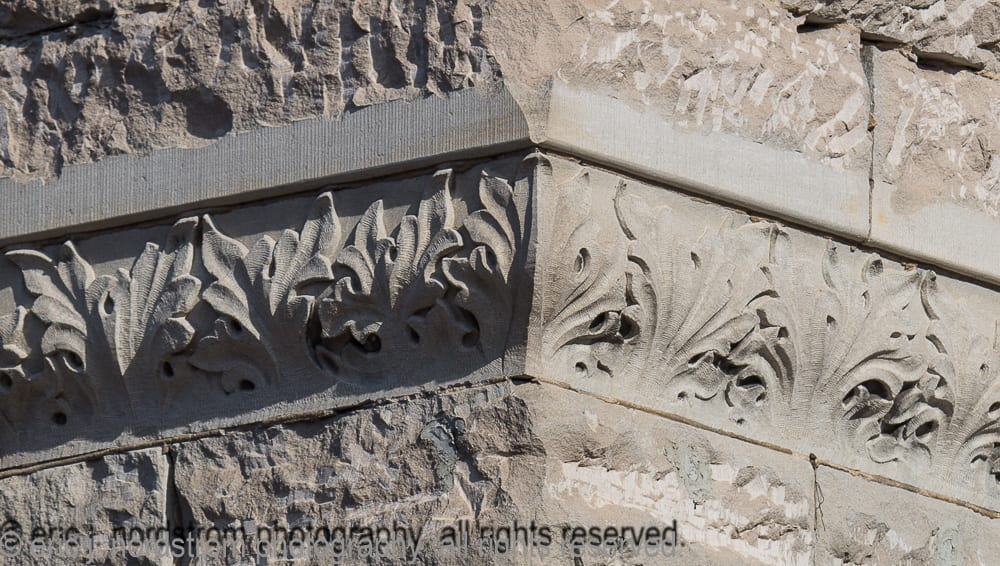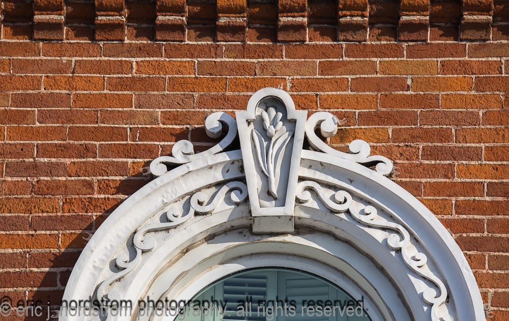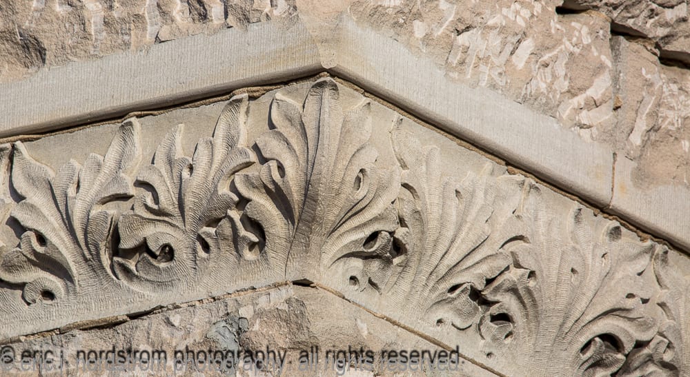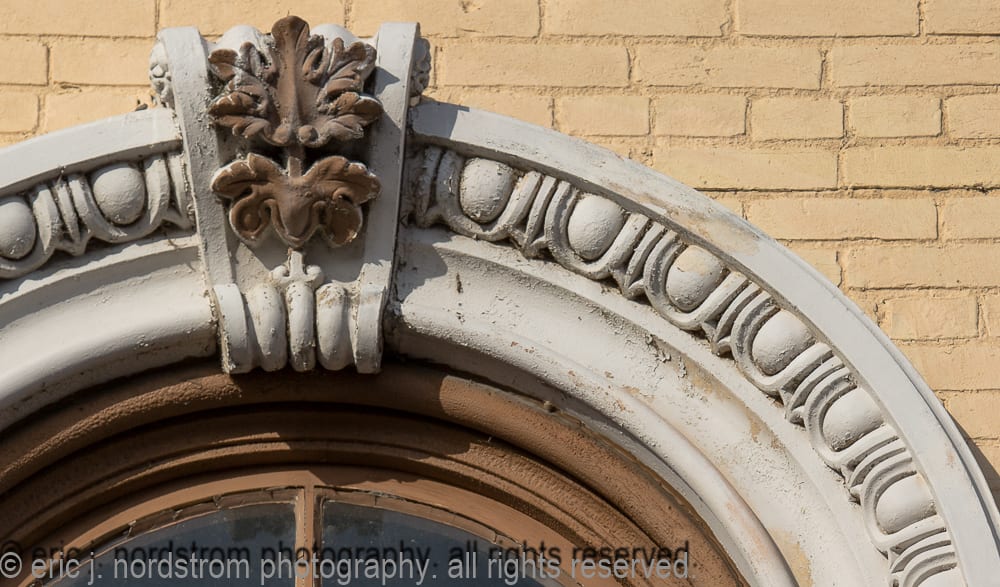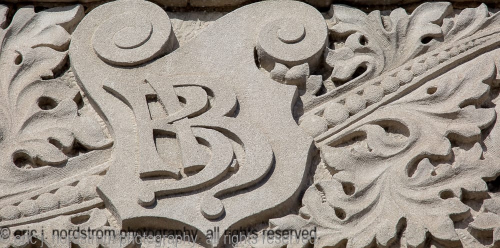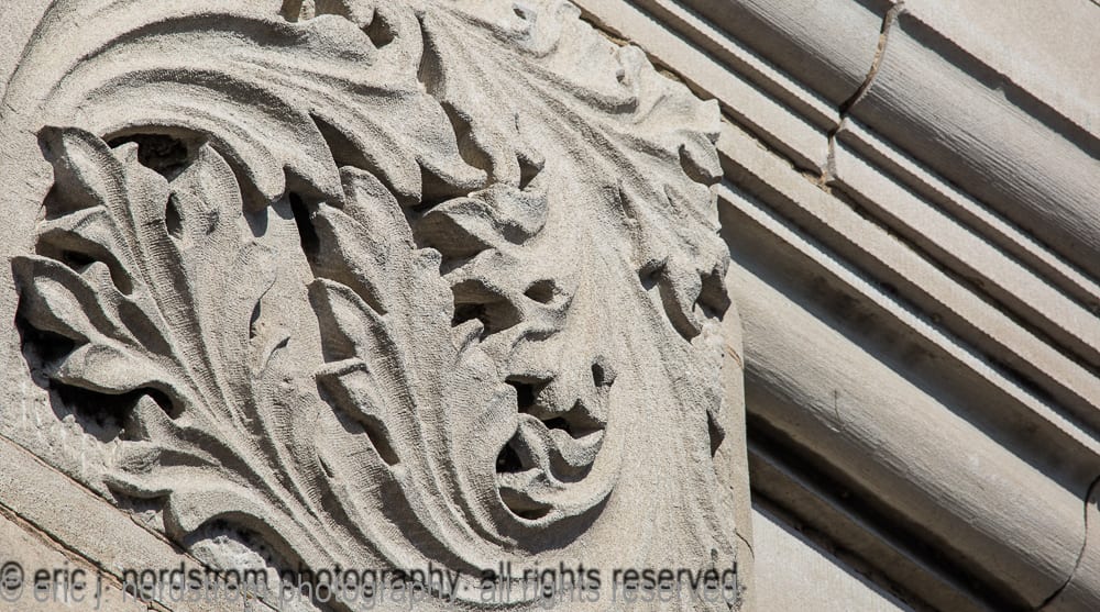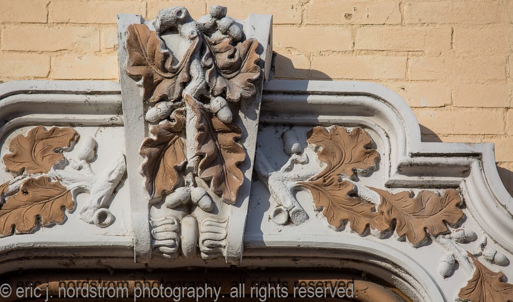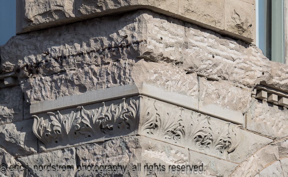 hand-carved limestone ornament adorning s.s. beman’s richardsonian romanesque style batavian bank building (1888) located in la crosse, wisc.