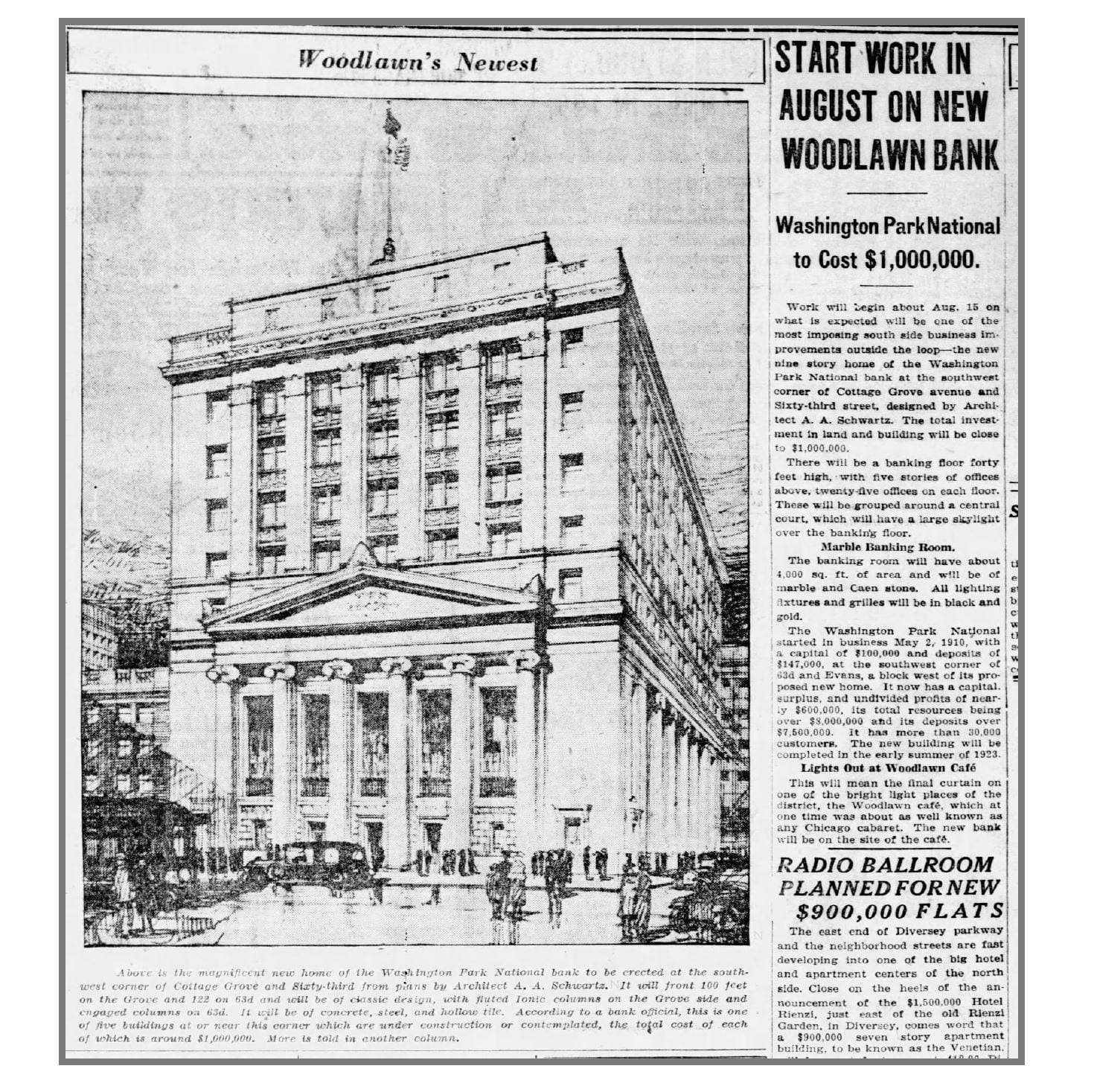 i’ve been tracking coverage of the impending demolition of the south side chicago washington park bank building, designed in 1925 by architect albert schwartz.