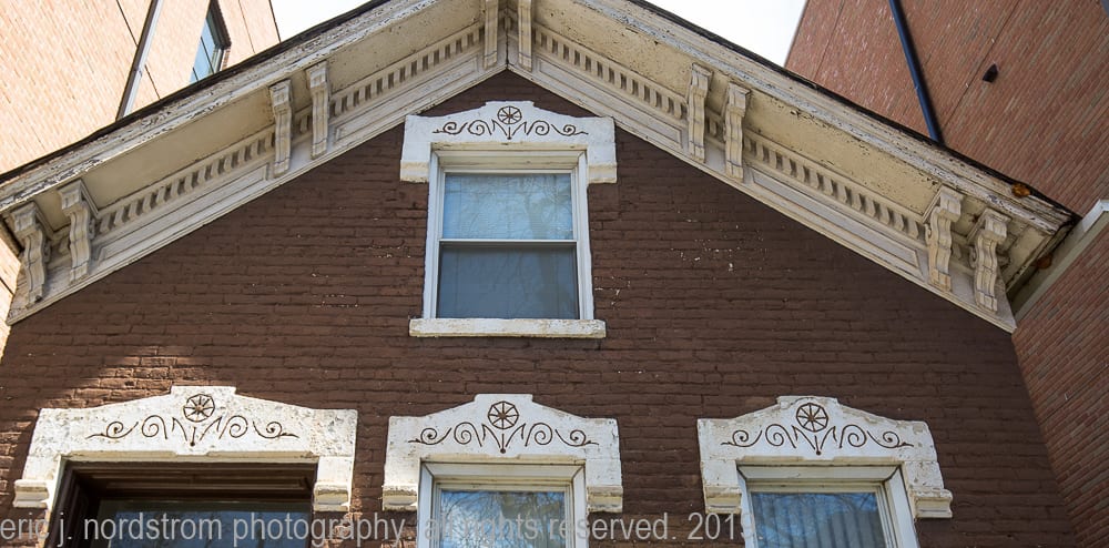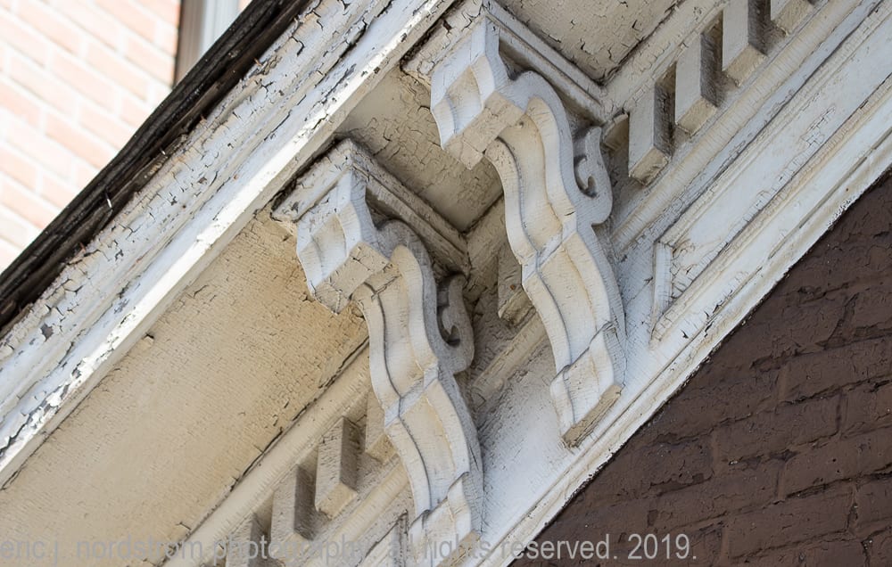 the neighborhood is largely unrecognizable through the lens of the past. however, i did see and document an 1870’s brick two-story with virtually identical cornice across the street. unfortunately, its posted for sale, but i suspect more for the land than the structure on it. it will join its neighbor in the landfill – it’s only a matter of time.