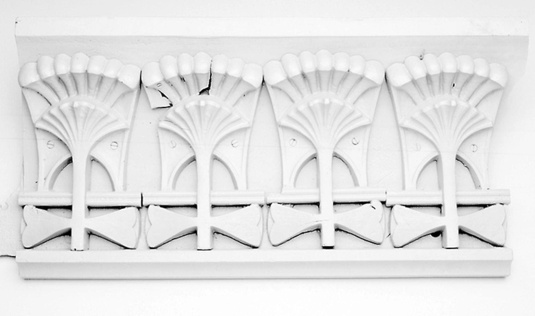 since the ground floor was a loss, nickel and a young tim samuelson did manage to salvage several cast iron spandrels below the roofline. sullivan designed this ornament (some of his earliest) while working as a draftsman for adler.