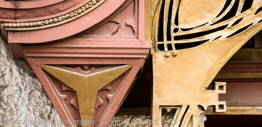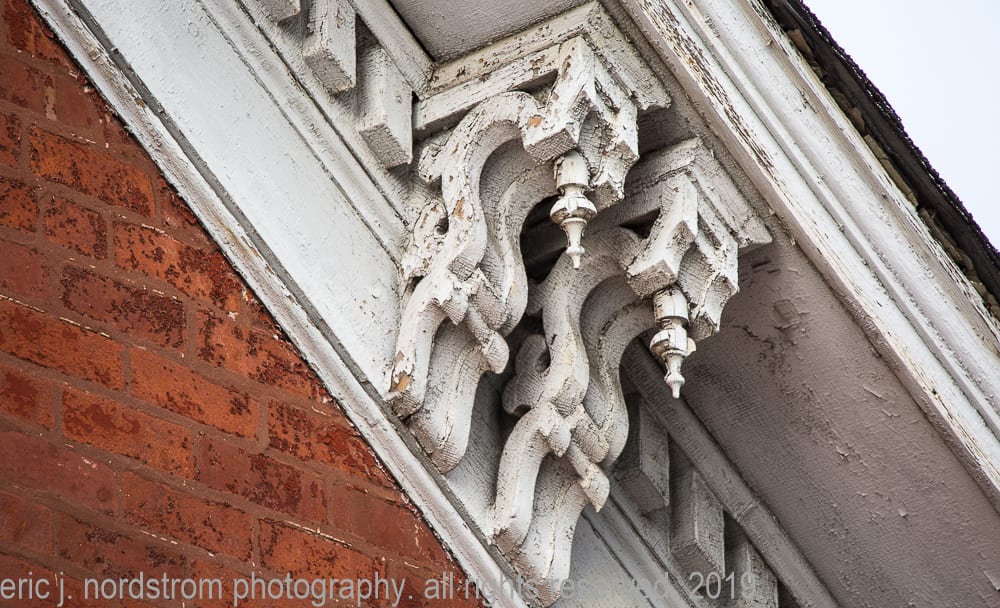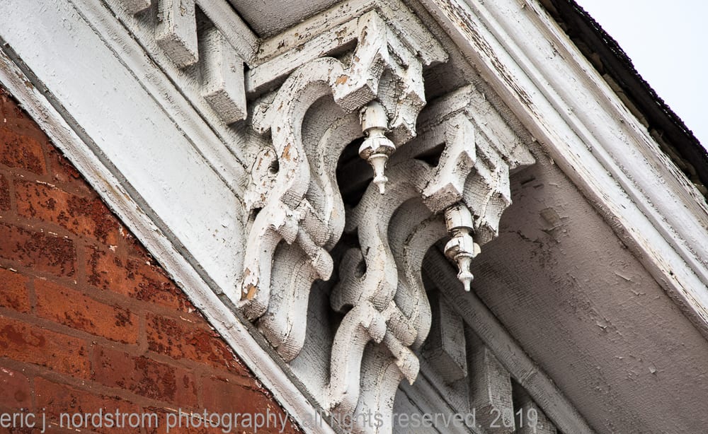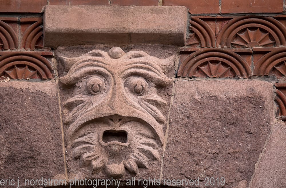 hodgepodge of images including a figural sandstone keystone, sullivan-designed fret-sawn panel detail from holy trinity (1903), safe and threatened cottages, incised lemont window hoods, northwestern terra cotta ornament, anderson pressed brick neogrec blocks, painted pine wood bracketed cornice detail, and… there is so much to document and discuss.
