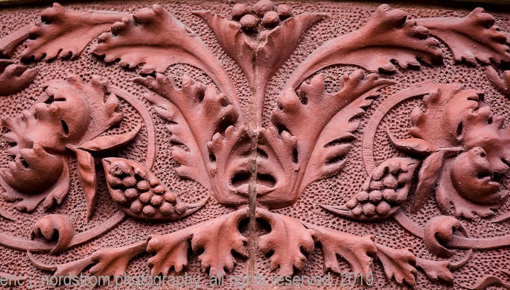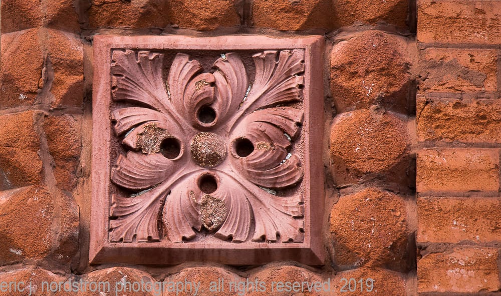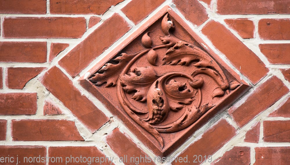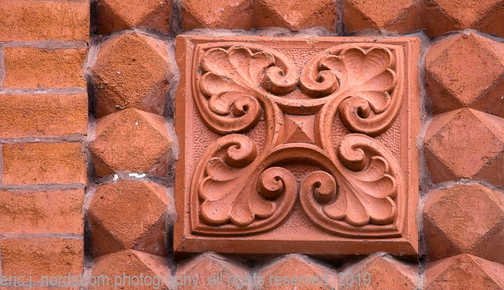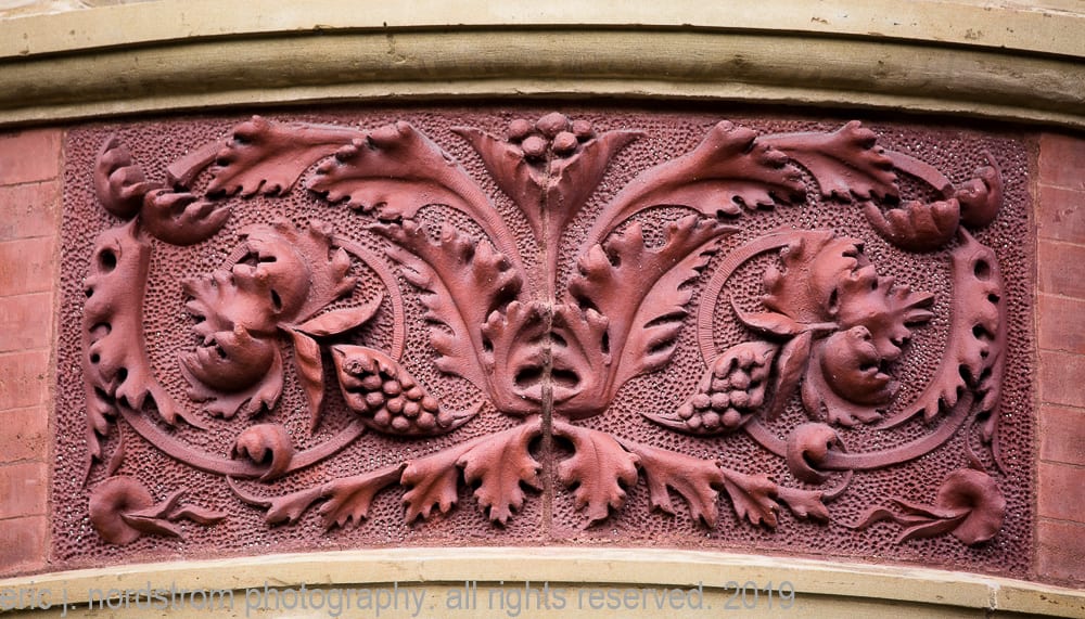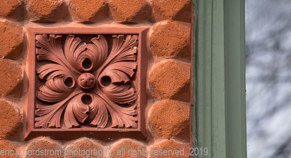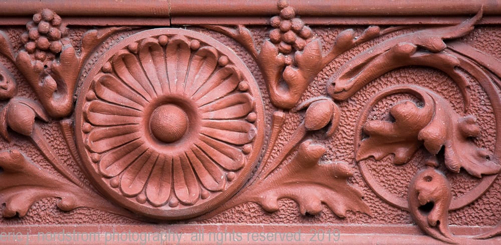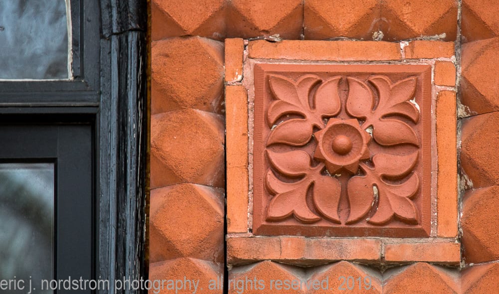 in addition recording examples “in situ,” i’ve included a block i salvaged in 2017 from an 1884-1885 workers cottage on evergreen. several sections – devoid of ornament – had lightly incised stamps (applied to front) for northwestern terra cotta works. if i recall correctly, the short-lived practice of stamping their ornament occurred between 1883-1885.