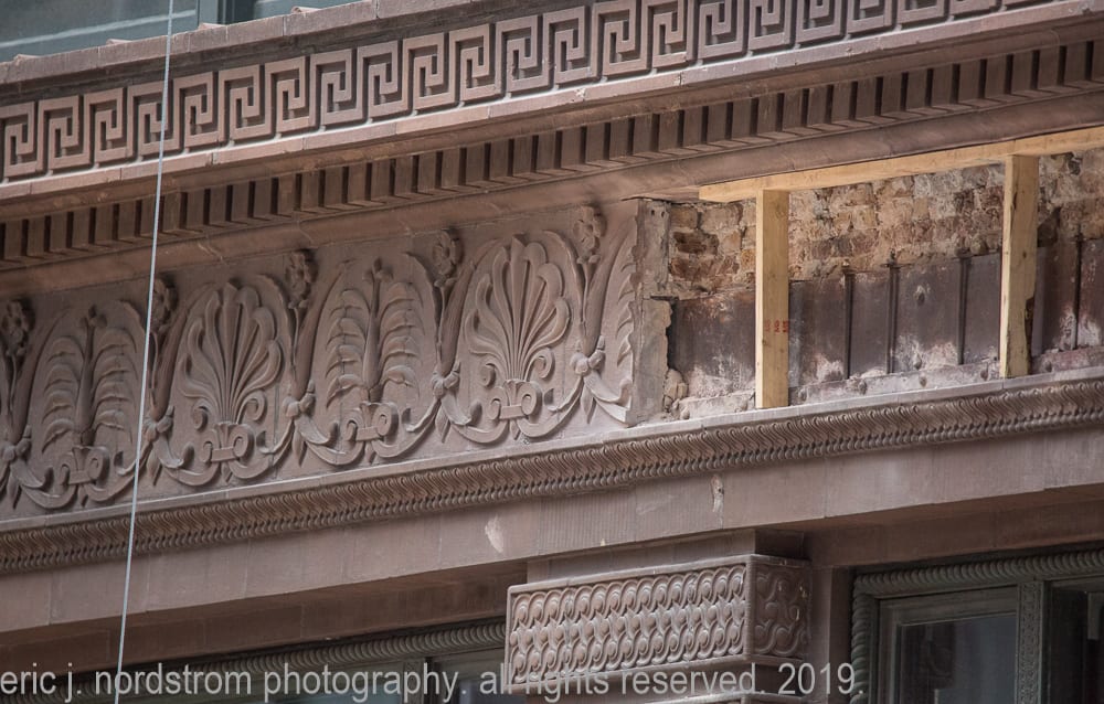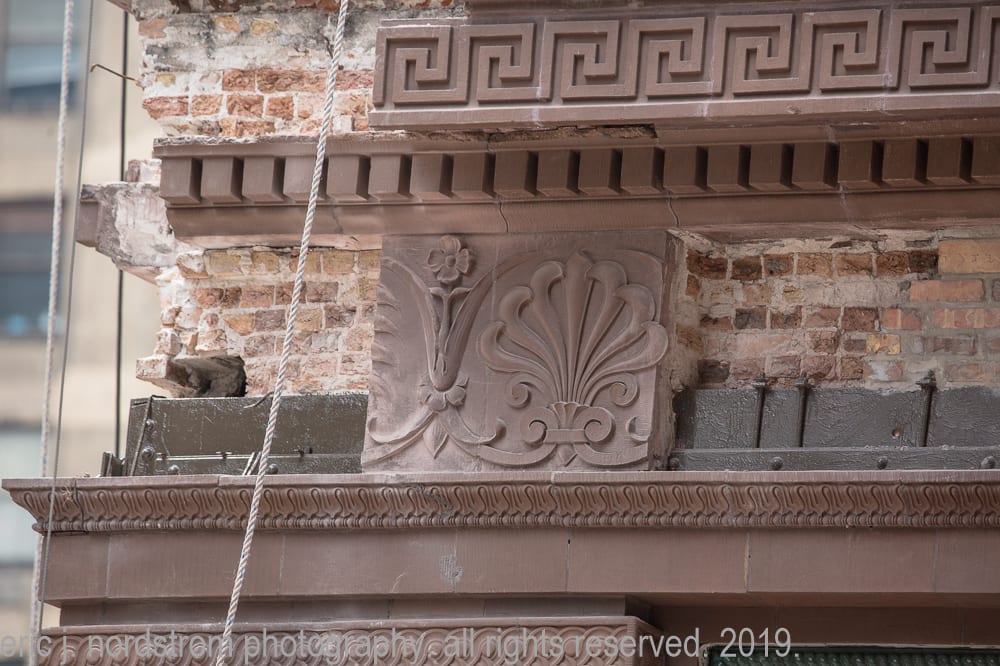 while i have touched on the importance of photo-documenting archival material, sullivan ornament and workers cottages, lately my focus has expanded to late 19th and early 20th century chicago school buildings undergoing historic renovations in downtown chicago. a number of facades are worked on each year, with little public attention to the craft and care involved in the restoration process.