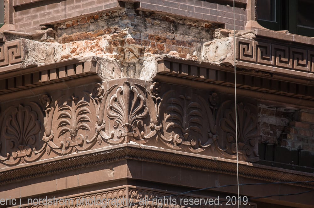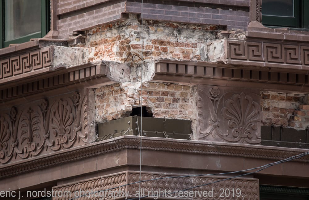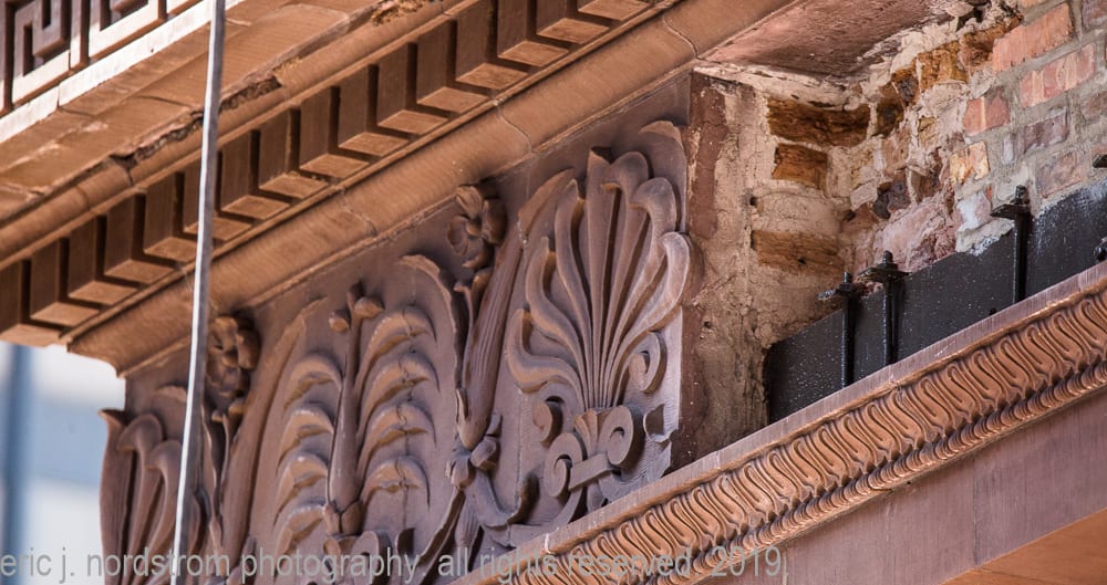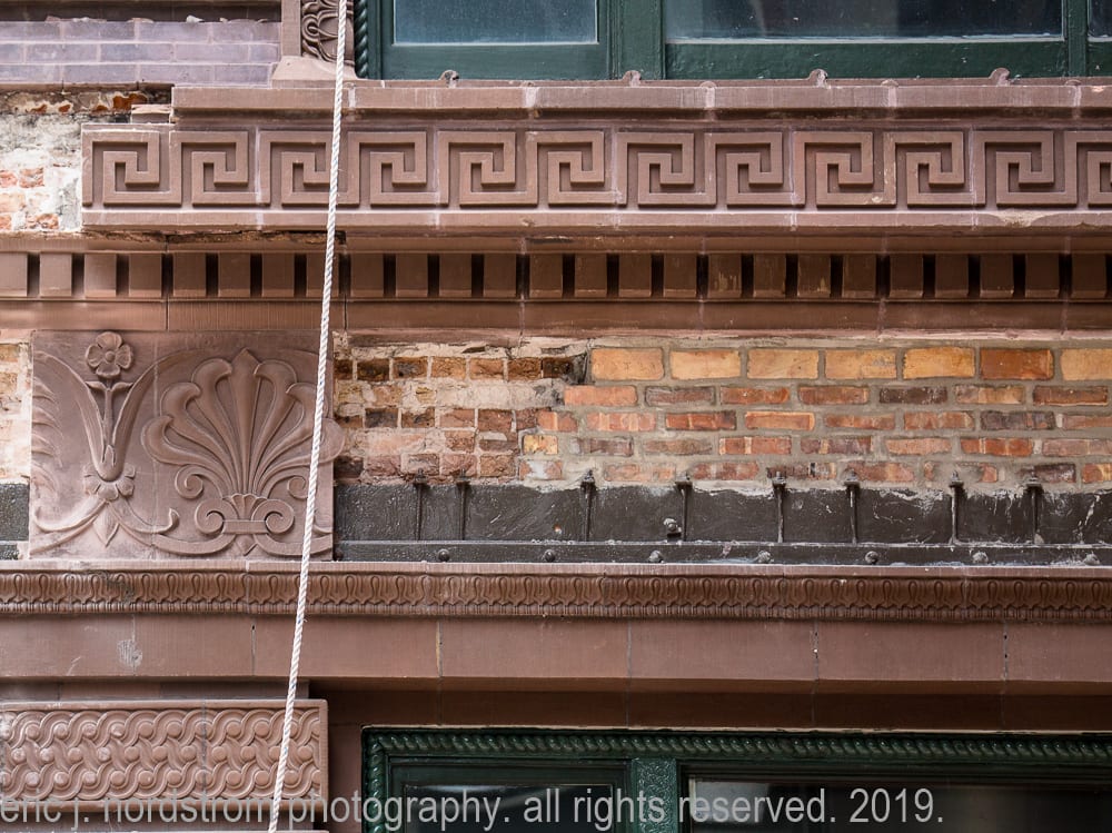 though i have worked on similar projects in the past (including documenting the sensitive and historic restoration of the chicago athletic association building, congress theater, cook county hospital, tribune tower, jewelers building and the restoration of a gage building cartouche, my inspiration was truly reignited by facade restoration work on holabird and roche’s marquette building (1895).