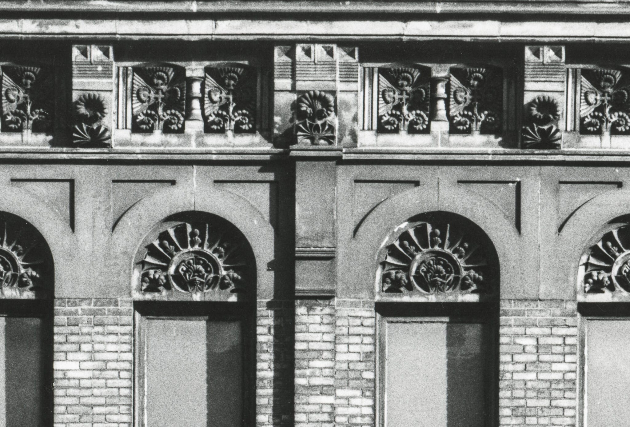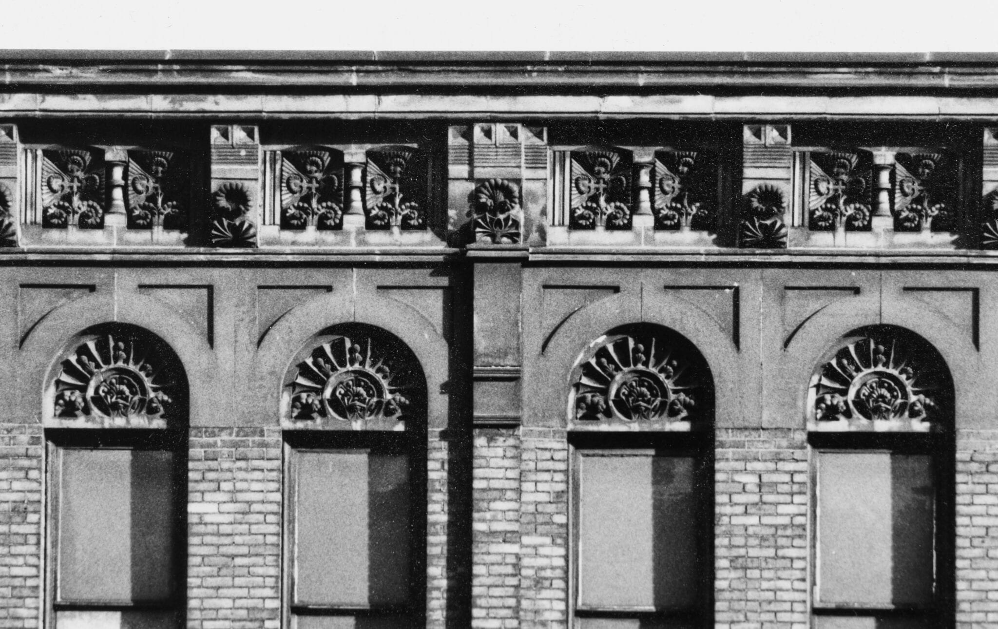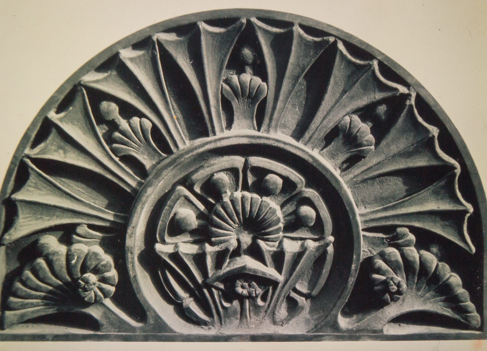 richard nickel photographic image of a terra cotta lunette designed by sullivan for adler and sullivan’s rosenfeld building (demolished in 1958).