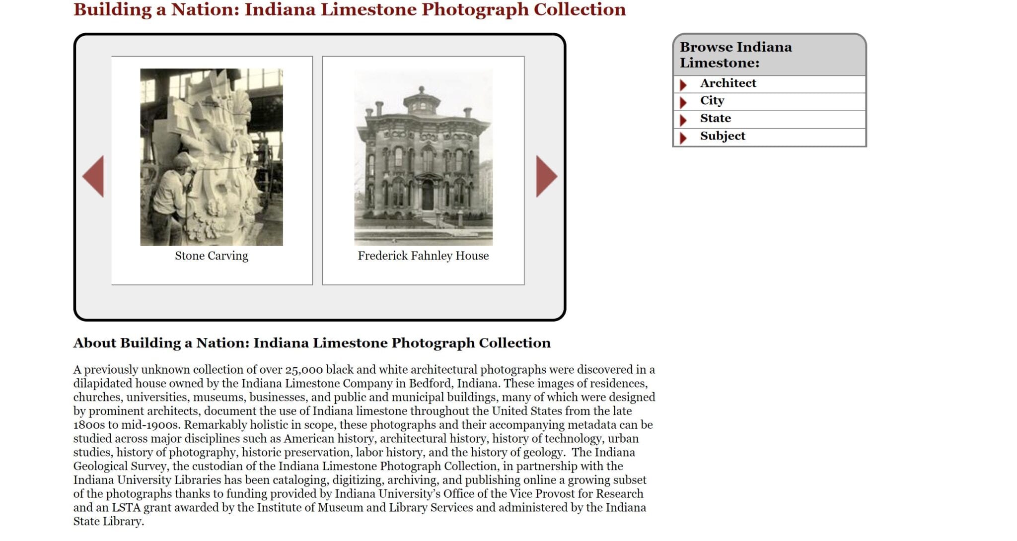 while researching the hotel’s construction, i poured over several stonemasons and quarries tied to the trades associated with stone dressing, carving, installation, and so on. i managed to track down an amazing image of a tradesman sculpting one of the whimsical hotel stevens bedford limestone “statues” in their carving shop. additional images of the company’s work can be readily accessed by searching through indiana university’s online image collections, including one identified as ‘building a nation: indiana limestone photograph collection.” the majority of the stevens hotel images are parked there.
