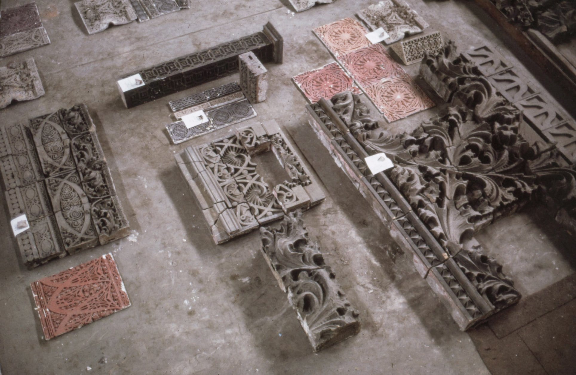 carefully examining the ornament in color provides invaluable insight into the various finishes (e.g., horrific paint treatment applied to the auditorium’s plaster) as it appeared at the time it was removed during demolition. in some instances, pollutants turned the light brown or buff-colored terra cotta black.