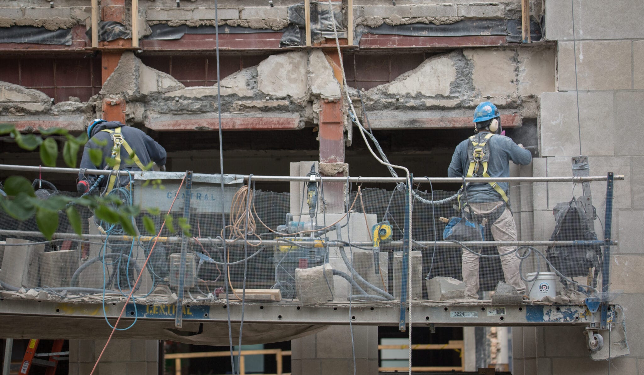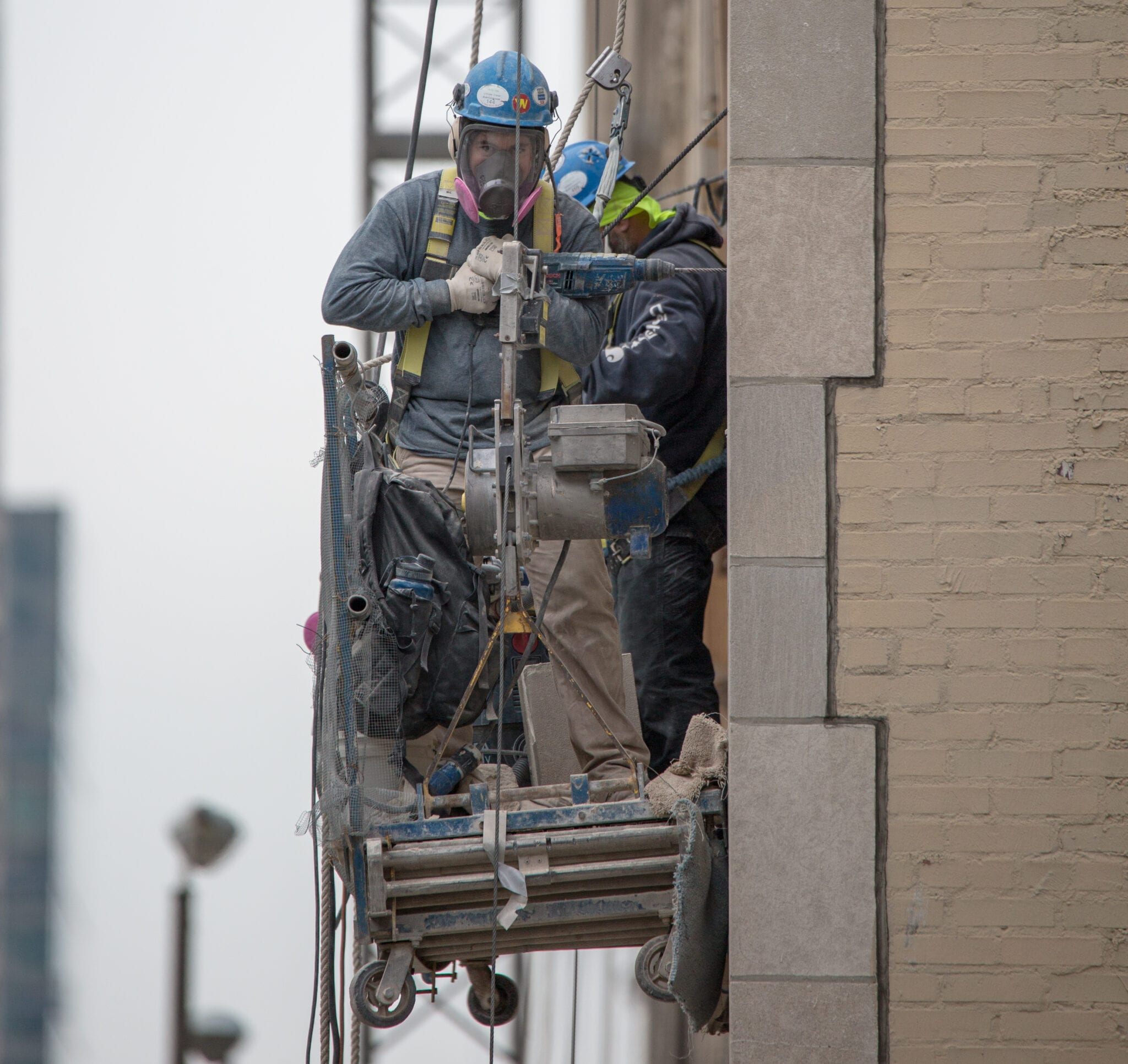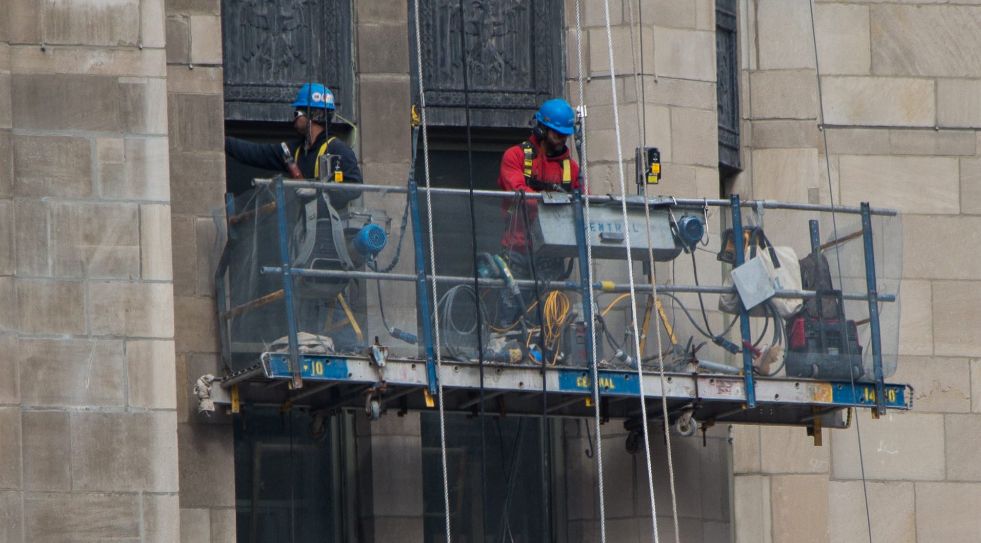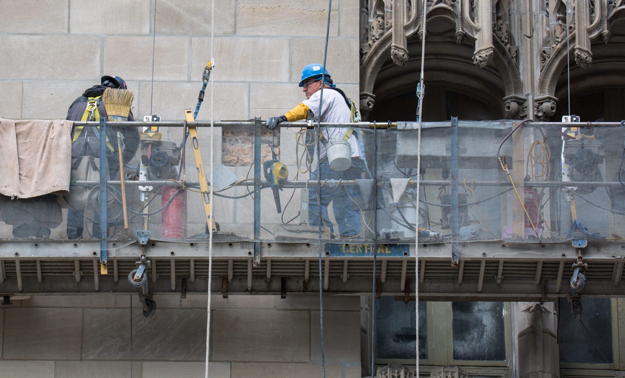 latest photographic images from ongoing restoration of howells and hood’s tribune tower (1925) and partial demolition of jarvis hunt’s printing plant (1929). the majority of the images focus on capturing tradesmen restoring the tower’s bedford limestone from their swing stages hanging off the facade like spiders in a web.